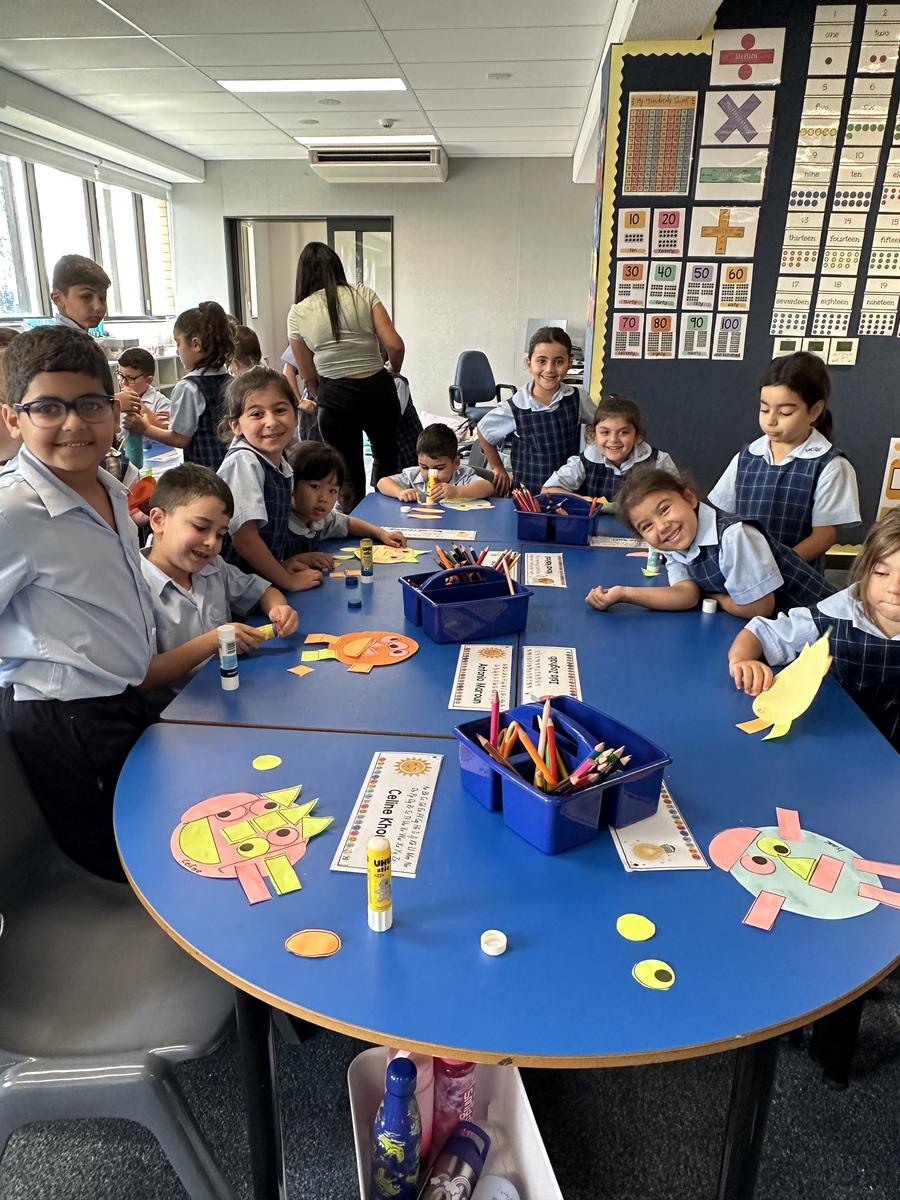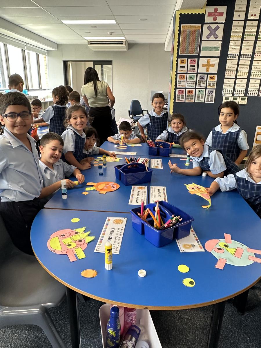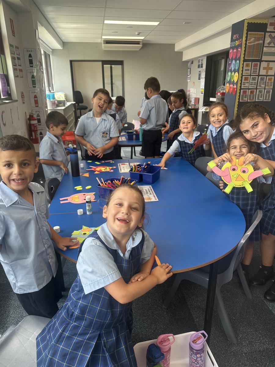 Kindy Blue and Year 2 Diamond collaborated in the new H Block. Students were engaged in the shape monster activity. Year 2 made the Kindy students feel welcomed and safe in their learning space.