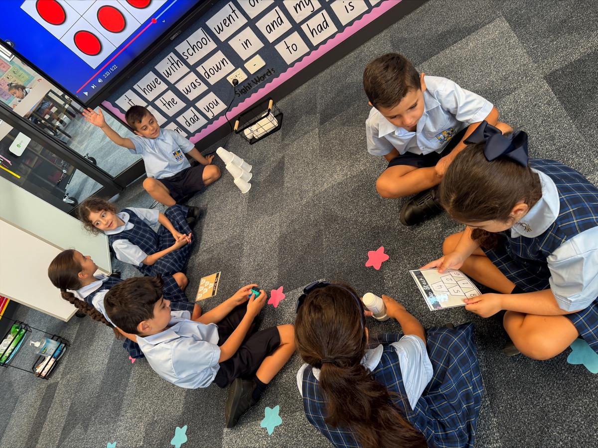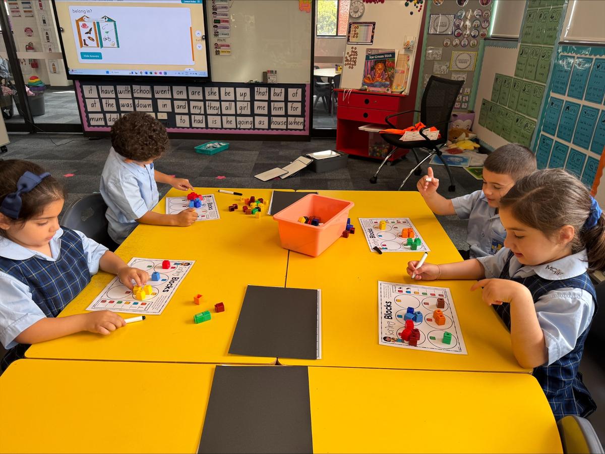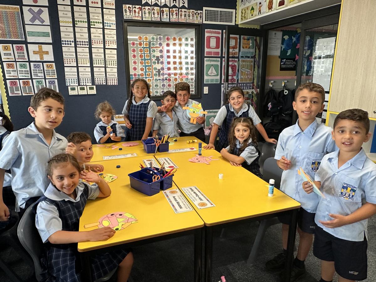 Kindy Blue and Year 2 Diamond collaborated in the new H Block. Students were engaged in the shape monster activity. Year 2 made the Kindy students feel welcomed and safe in their learning space.