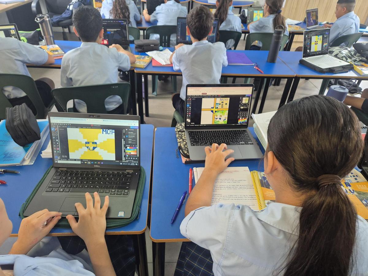 Mrs Bou-Melhem's Year 7 Technology are learning about how data is presented in digital systems. We focused on images and pixels. Students were then challenged to replicate the front cover of the college diary using pixel art.