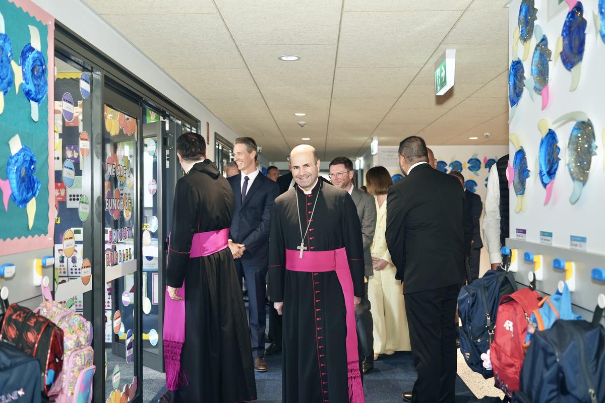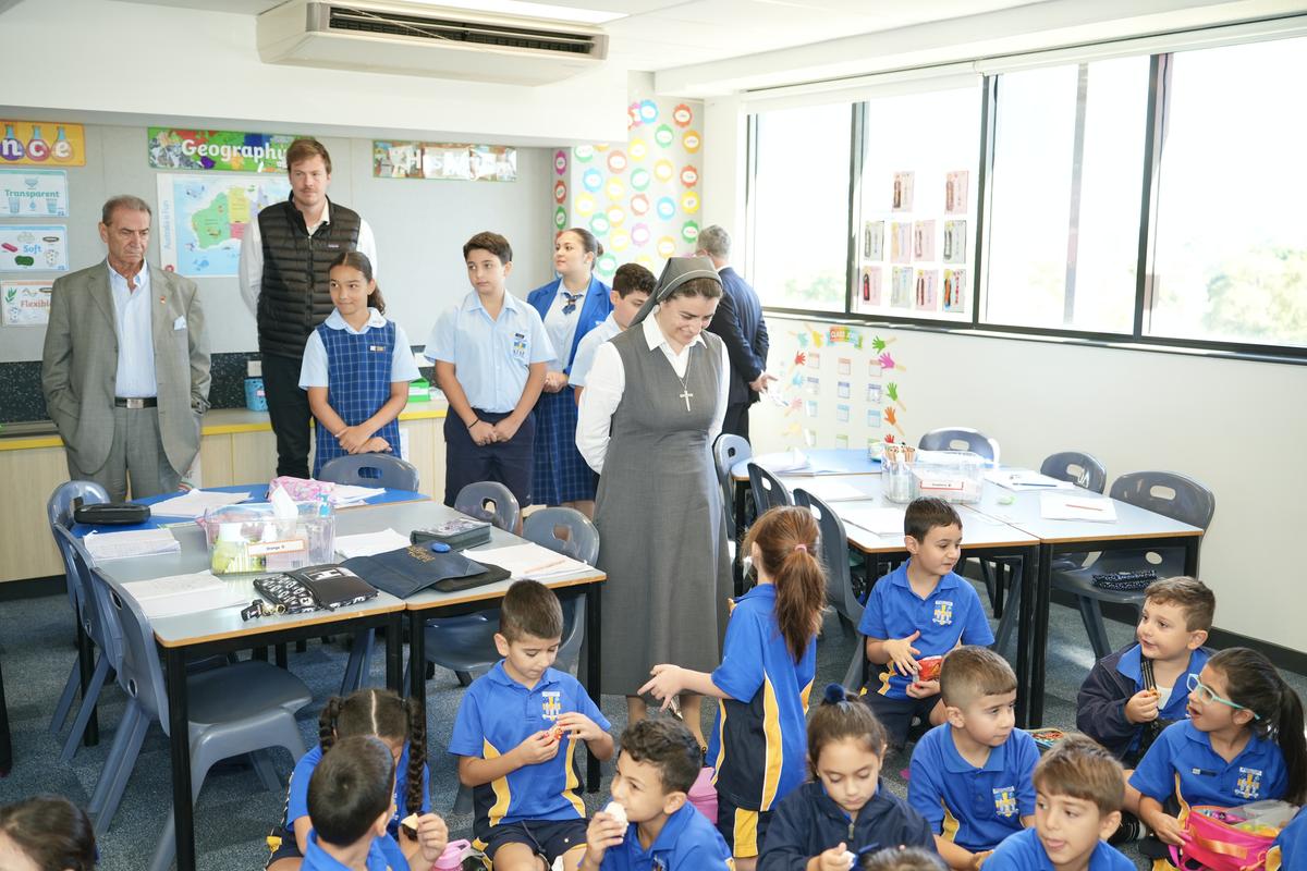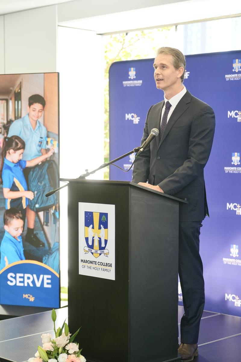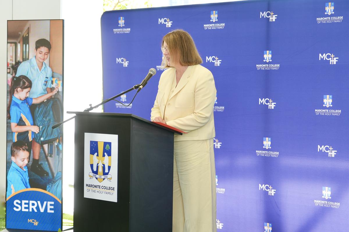 The event commenced with the National Anthems, Prayer and Acknowledgement of Country led by our College Captains. Mr George Khouri, Chair of our Board, and Sr Margaret, our Executive Principal, addressed the guests on the importance of this building as we complete the first stage of our master plan and the future ahead of completing the following stages. Dr Charlton congratulated our College in his address and Bishop Tarabay officially blessed our building.