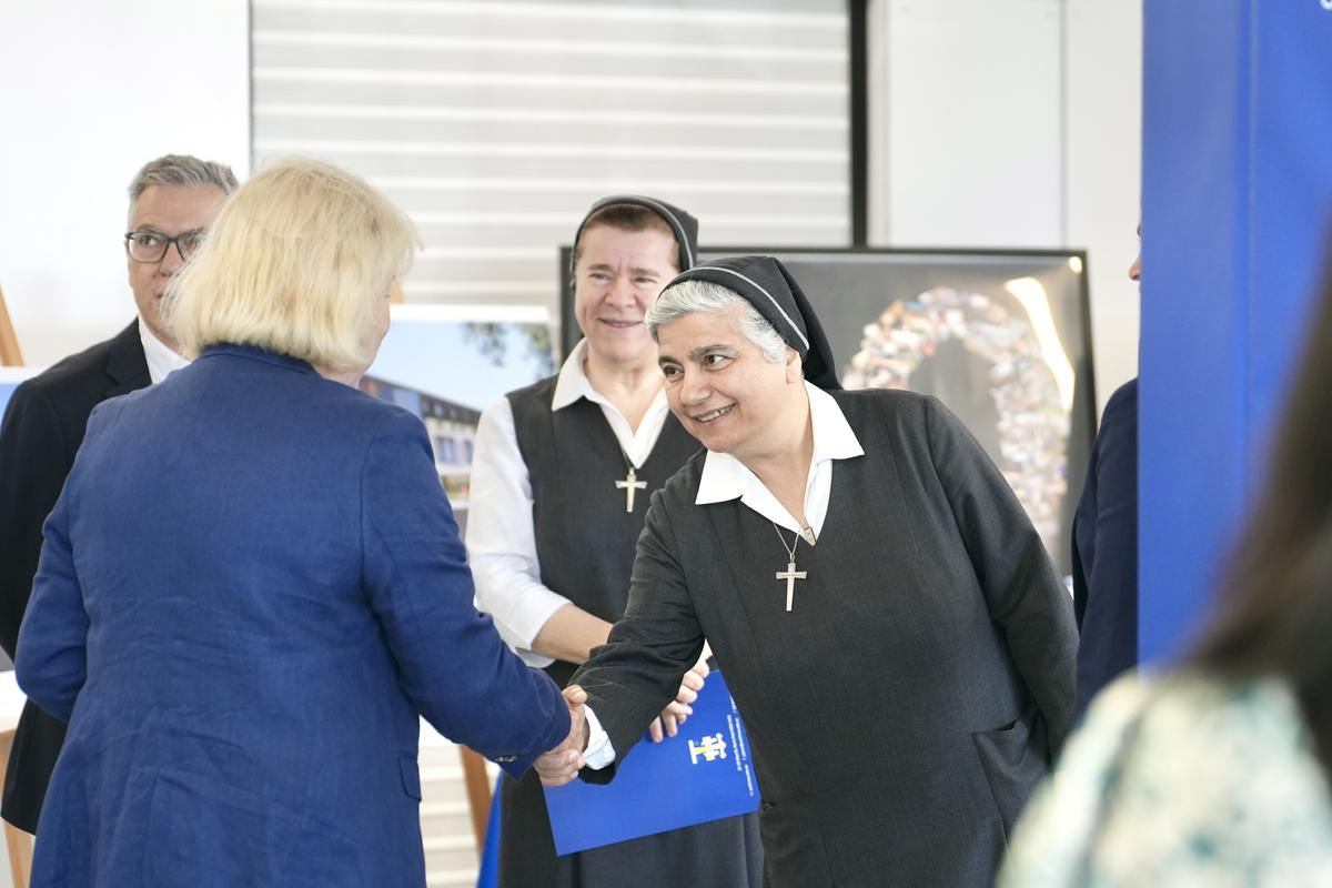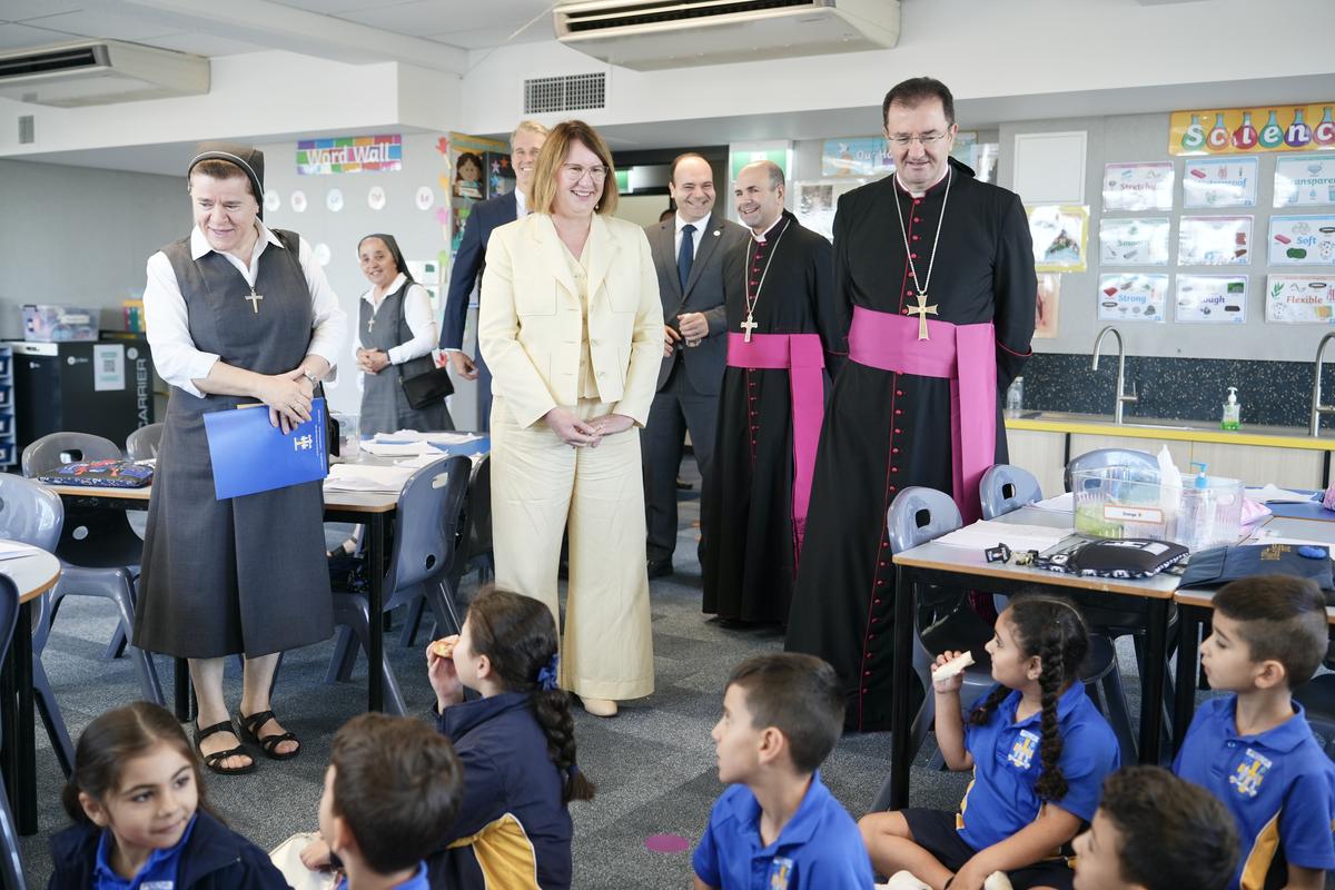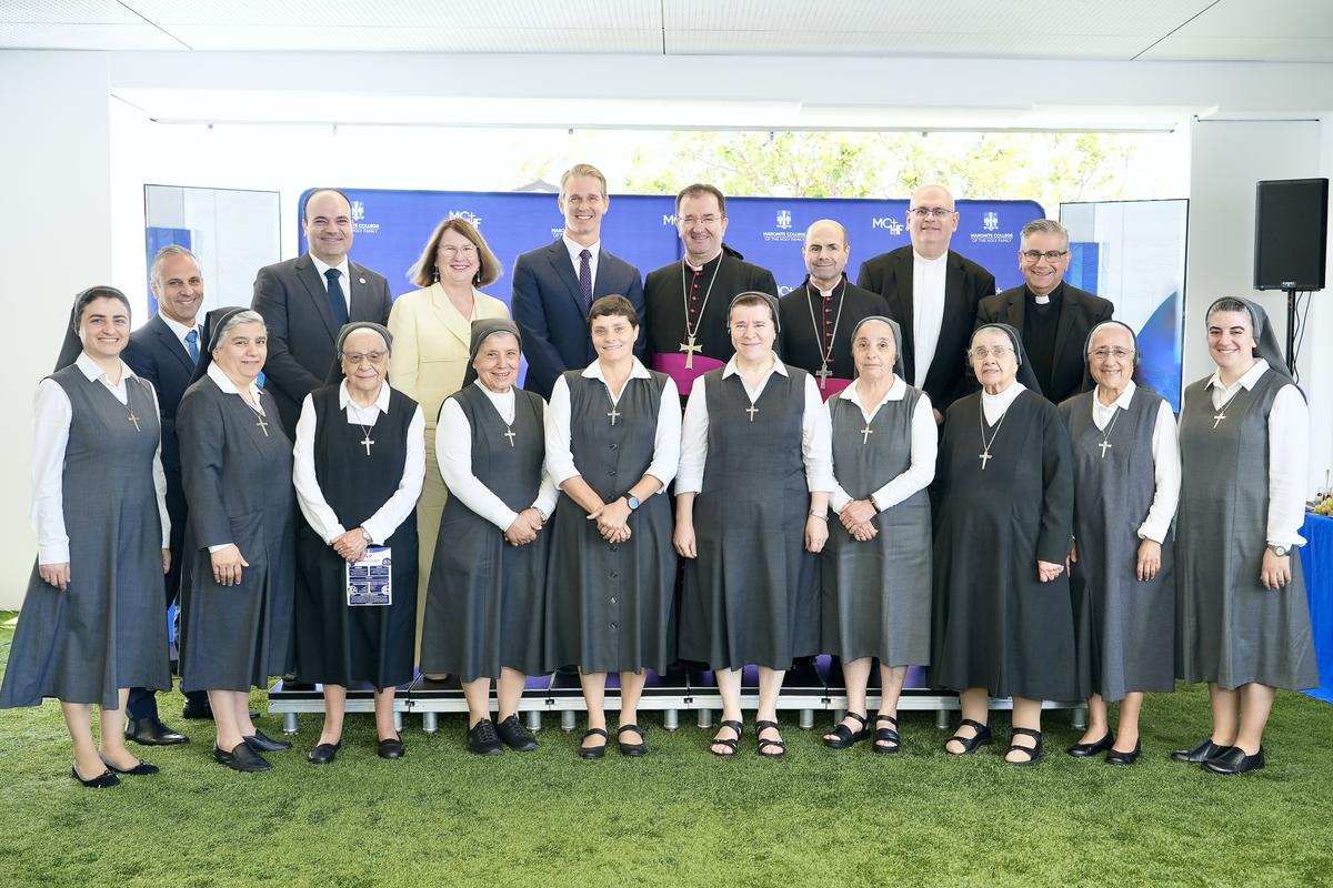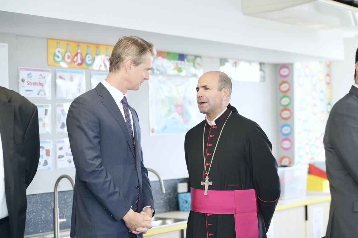 The event commenced with the National Anthems, Prayer and Acknowledgement of Country led by our College Captains. Mr George Khouri, Chair of our Board, and Sr Margaret, our Executive Principal, addressed the guests on the importance of this building as we complete the first stage of our master plan and the future ahead of completing the following stages. Dr Charlton congratulated our College in his address and Bishop Tarabay officially blessed our building.