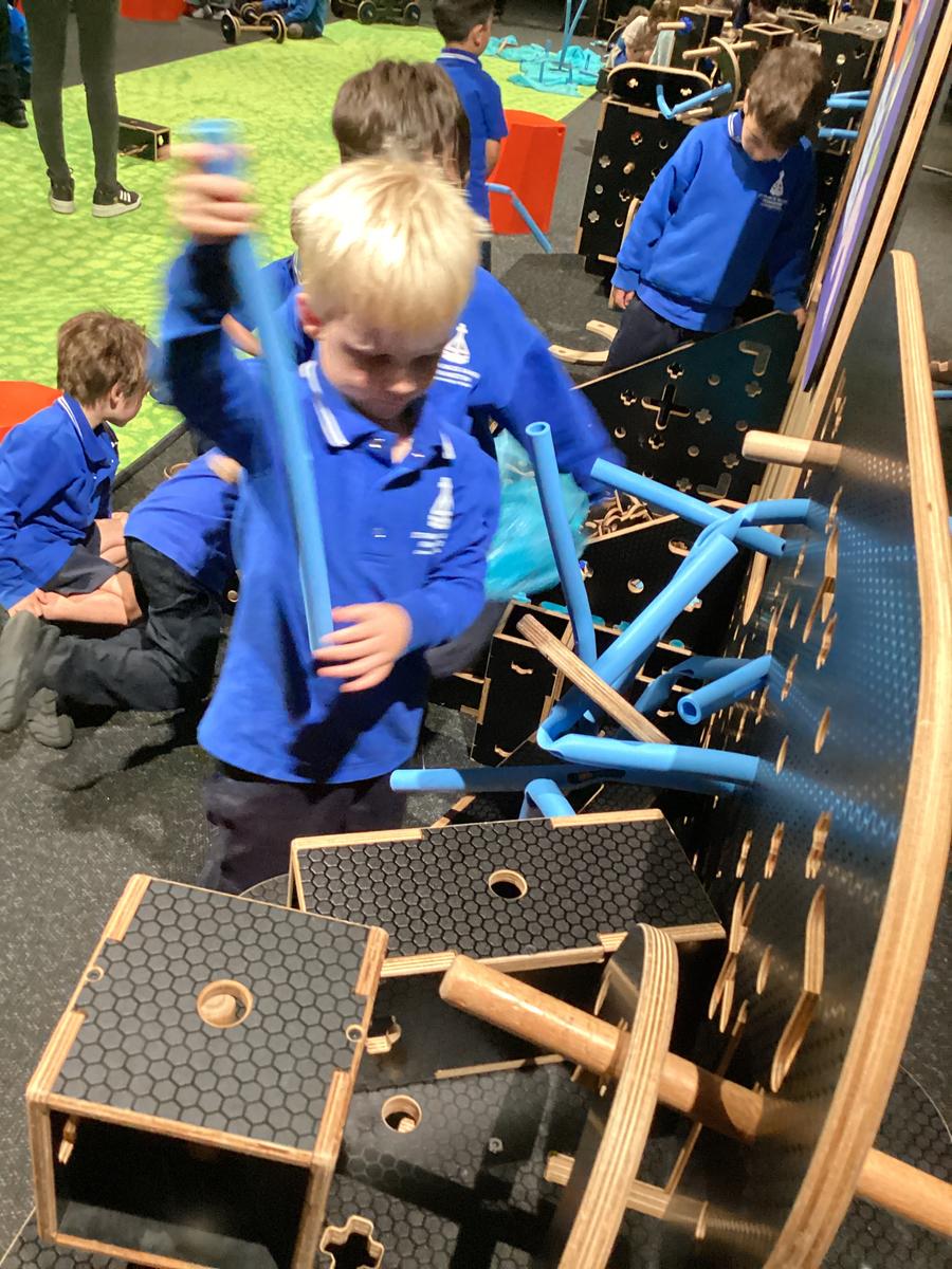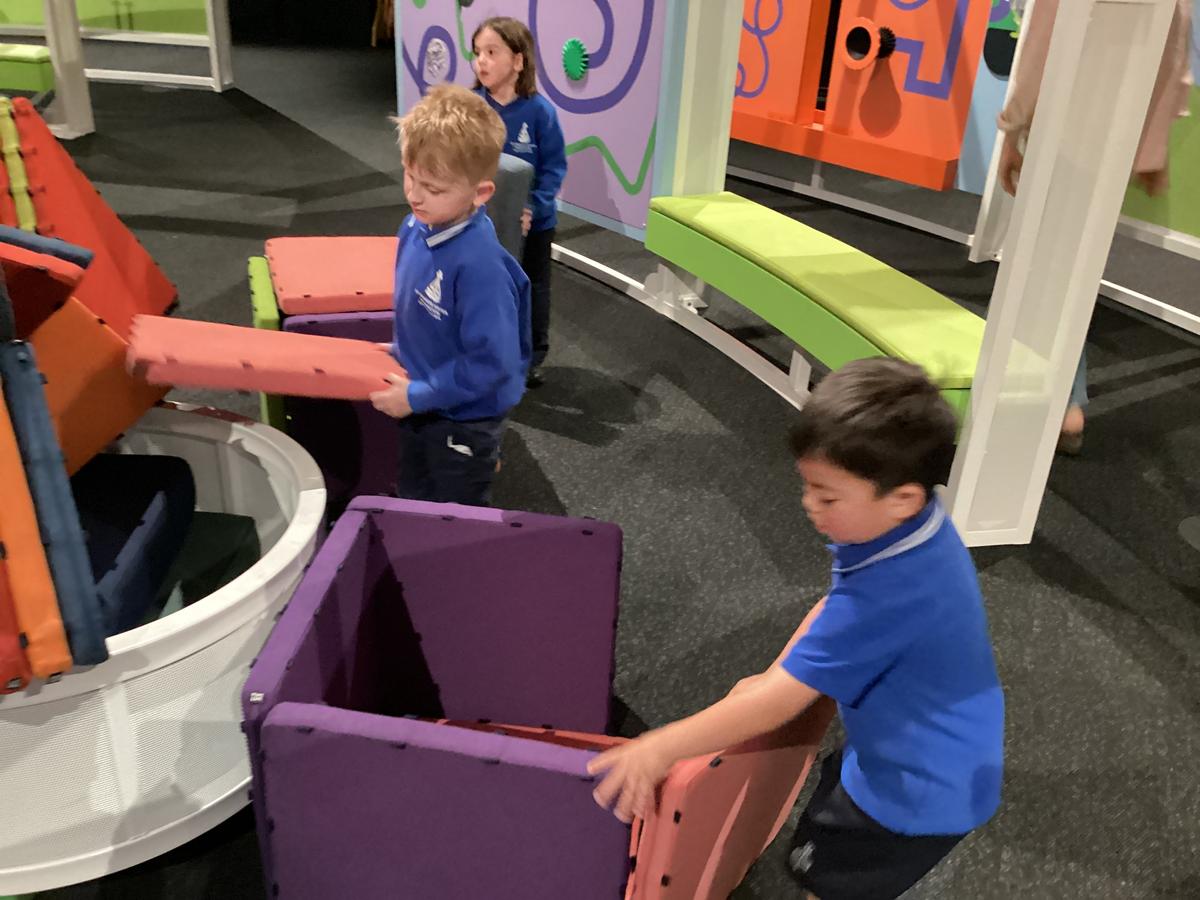 On Tuesday morning, the Preps excitedly boarded the bus to Scienceworks. Our first stop was Tinkertown, where the students explored and interacted with a range of hands-on exhibits. They were encouraged to create ramps, tessellate shapes, and build using different materials. It was wonderful to see them working together and collaborating to construct houses, robots, a water park, and even gym equipment.