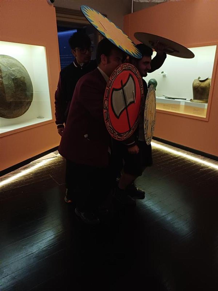 During the guided tour, students explored a wide range of exhibits featuring statues of Greek gods, historical artifacts, and even had the chance to hold ancient coins, stones, and early Greek weaponry. The hands-on nature of the visit gave students a unique perspective on how ancient Greeks lived, worshipped, and fought.
