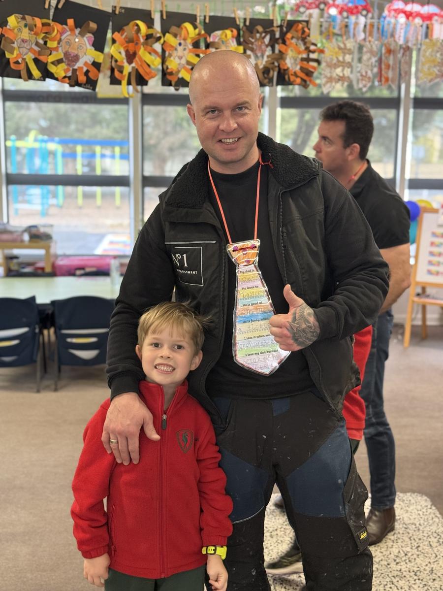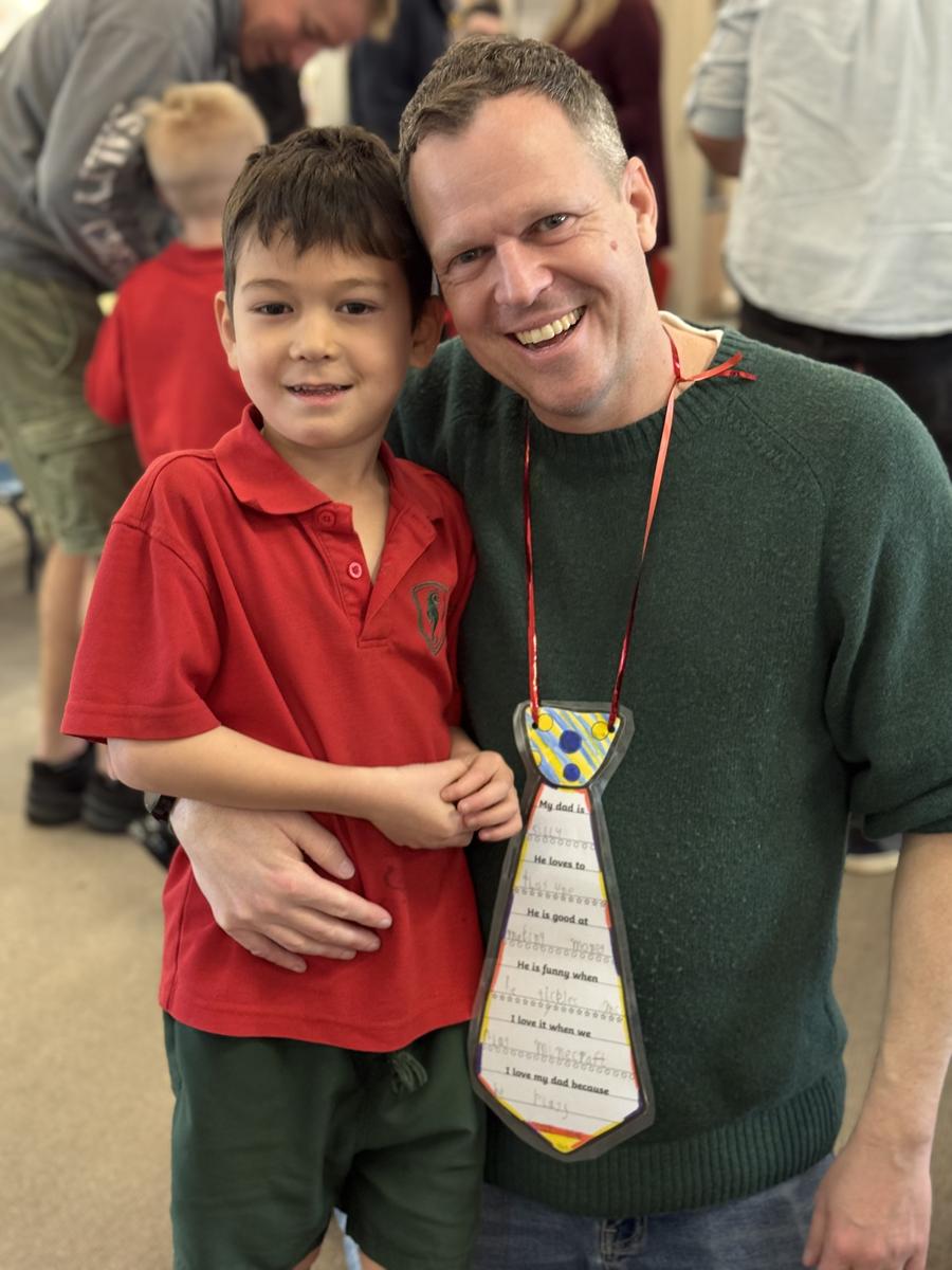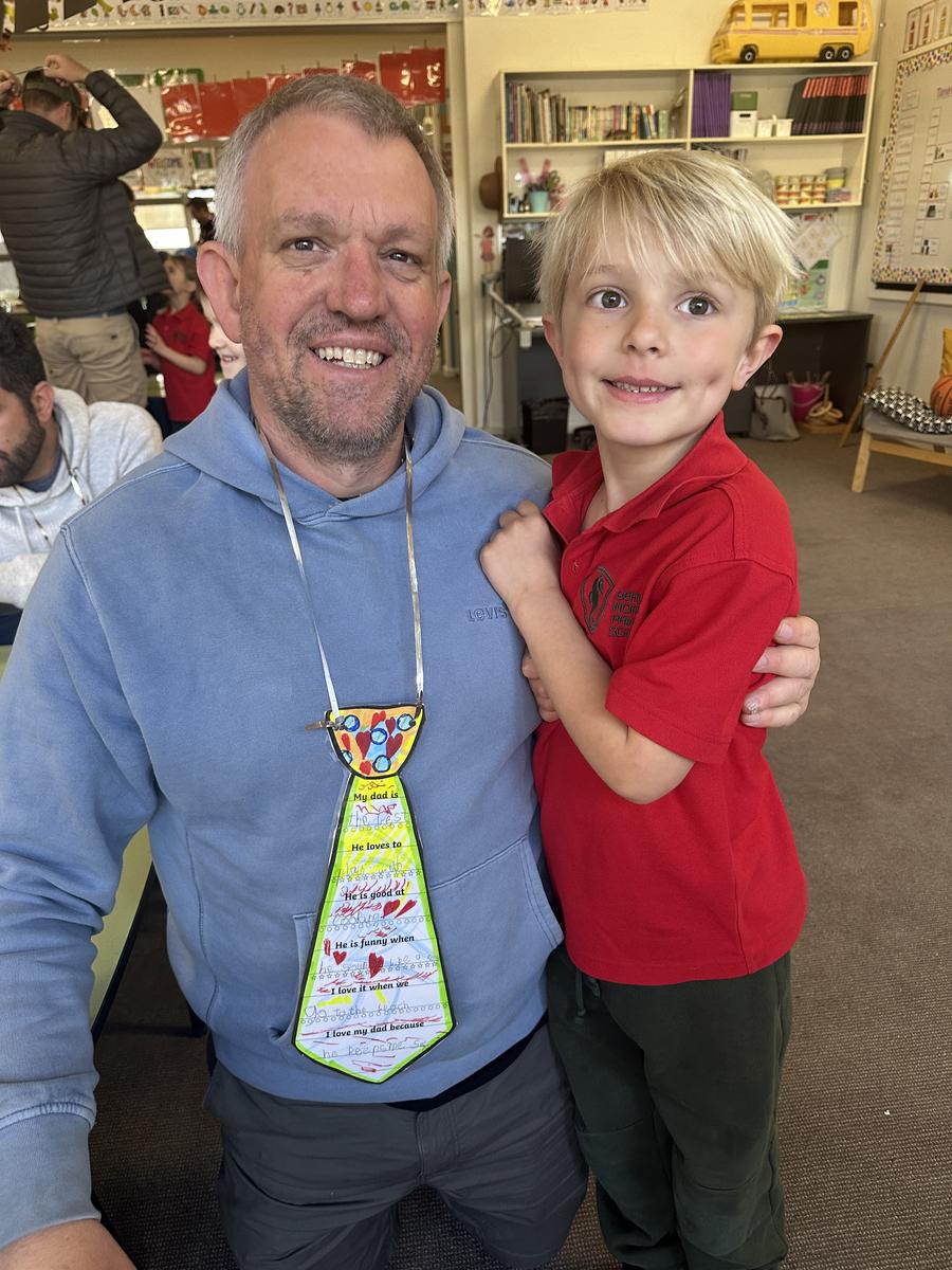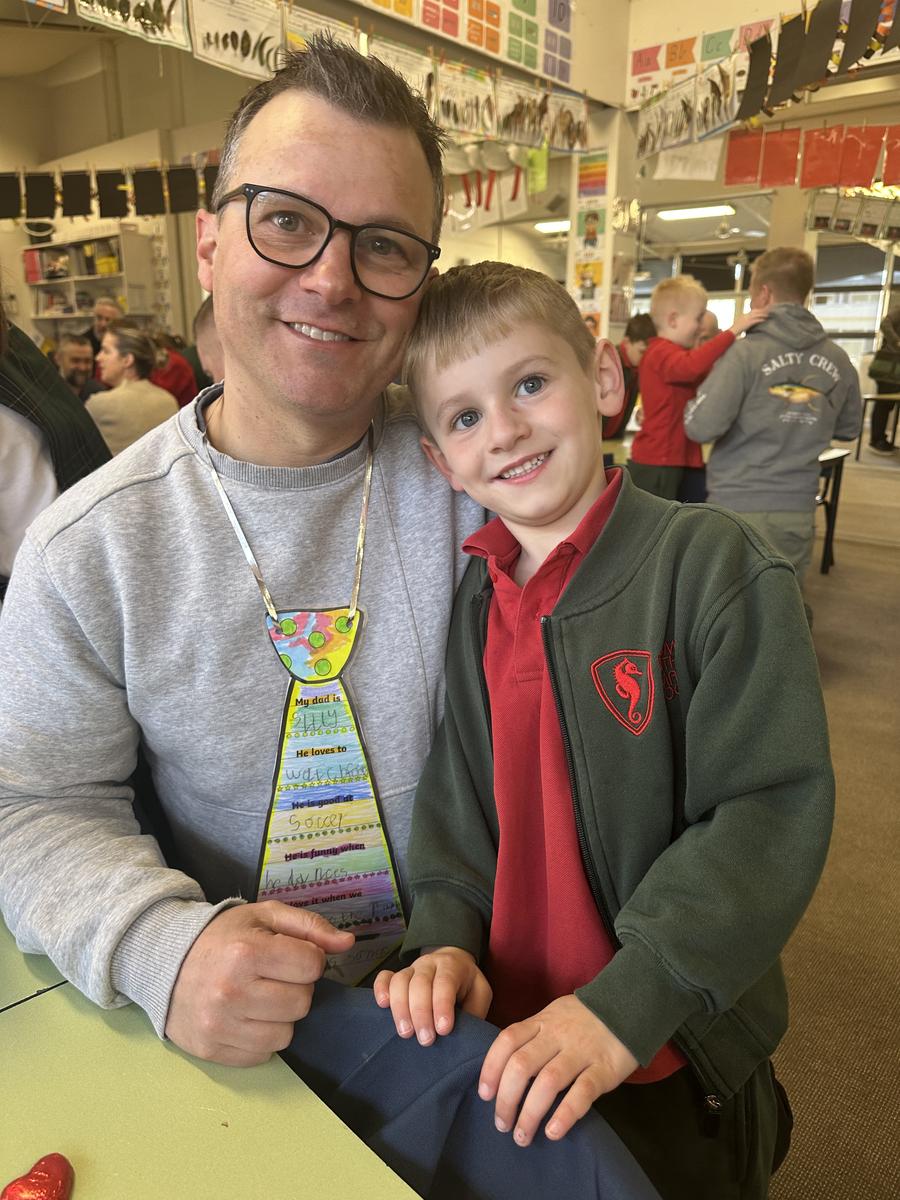 The children made handmade gifts, a colourful tie for each dad or special friend to wear and a placemat decorated with heartfelt messages about why we love them. Everyone loved their presents, and they all put their ties on straight away!