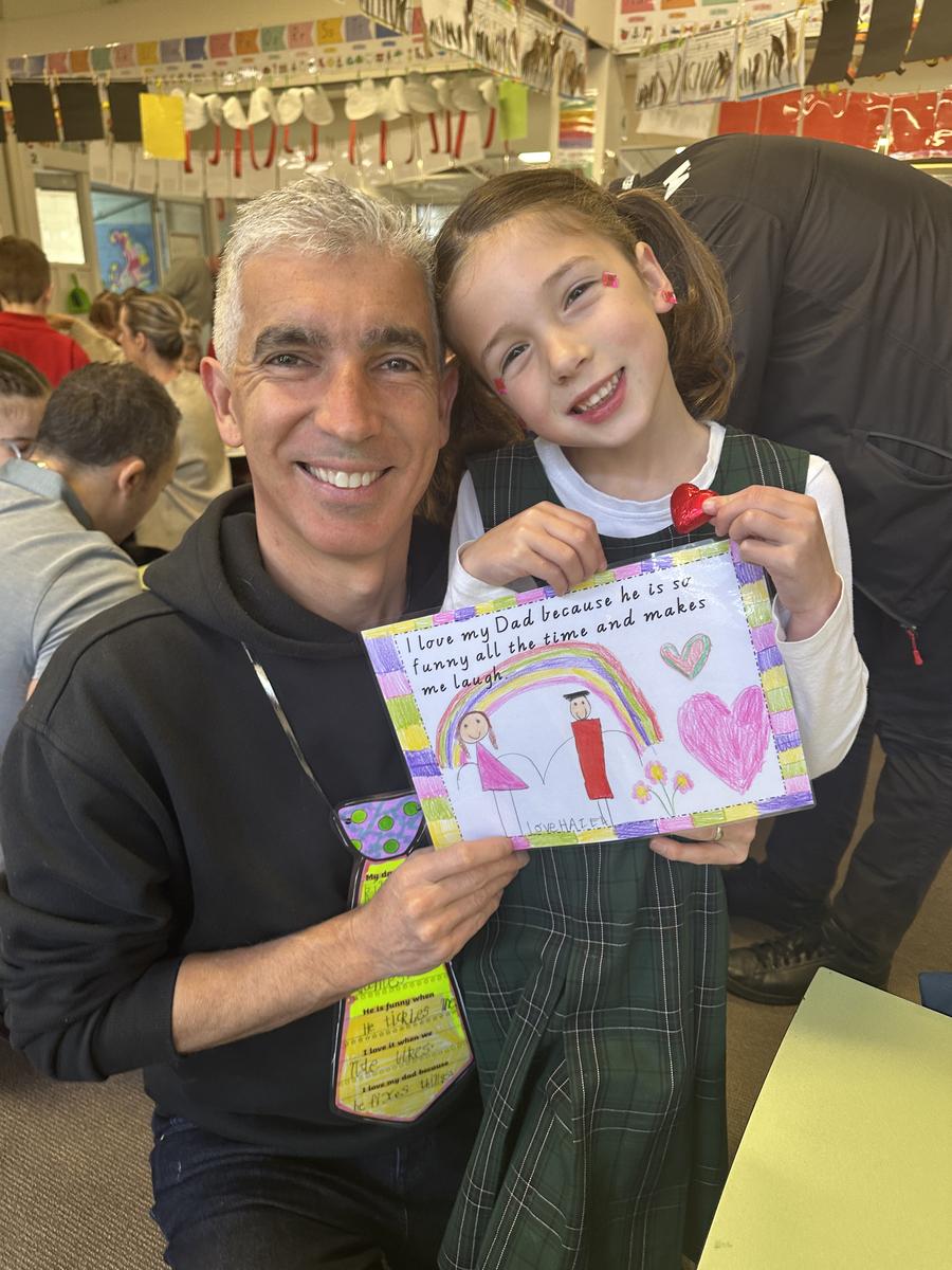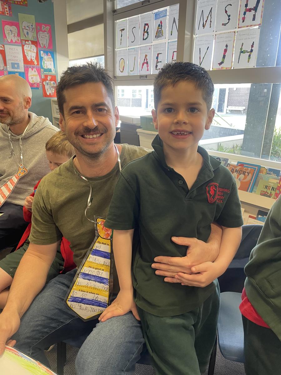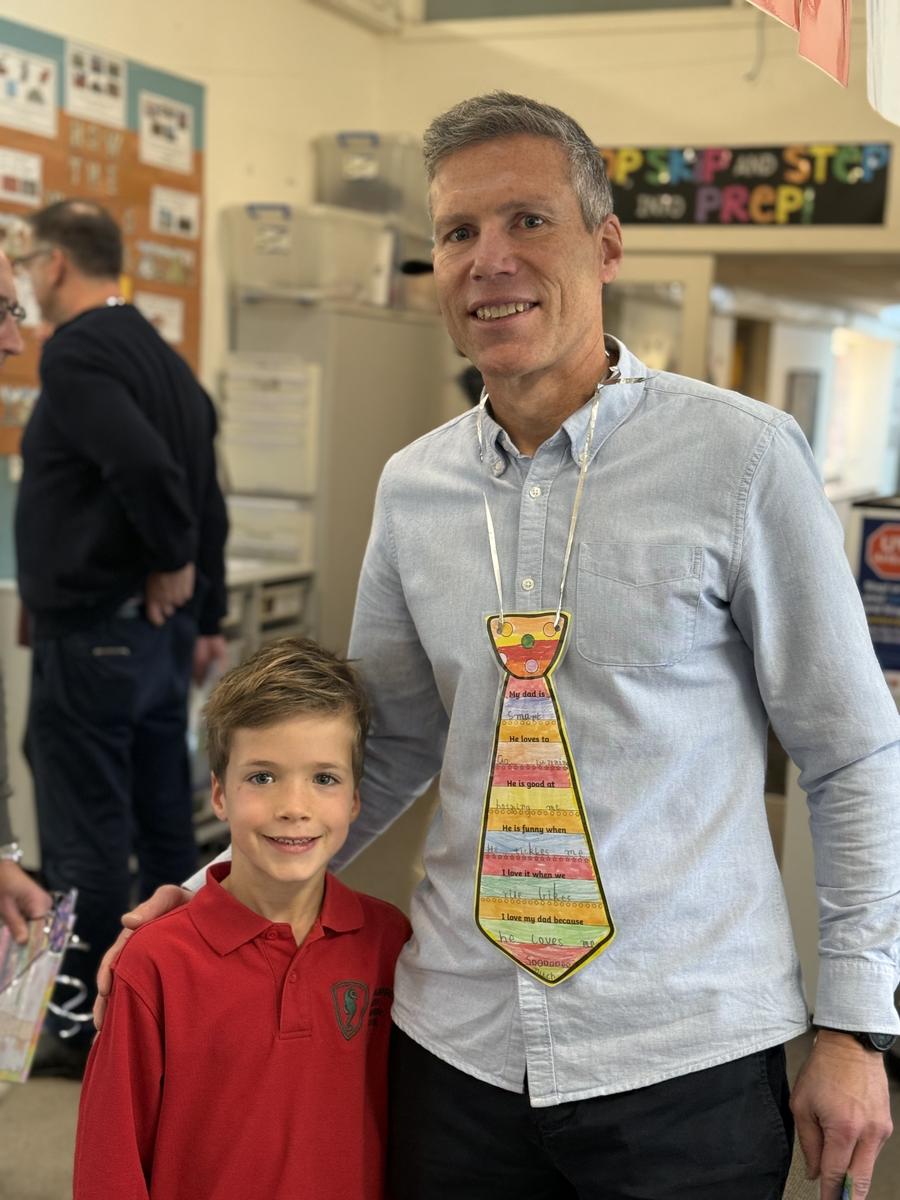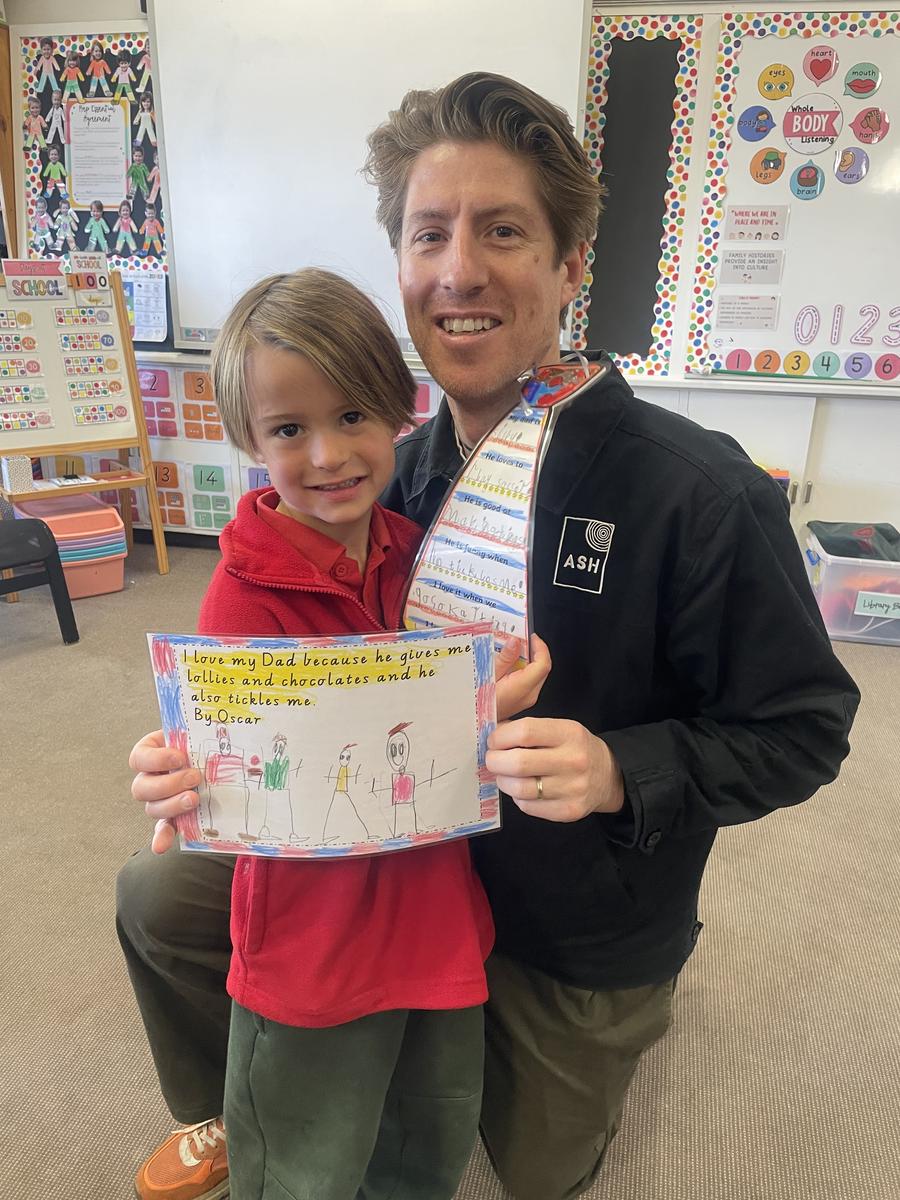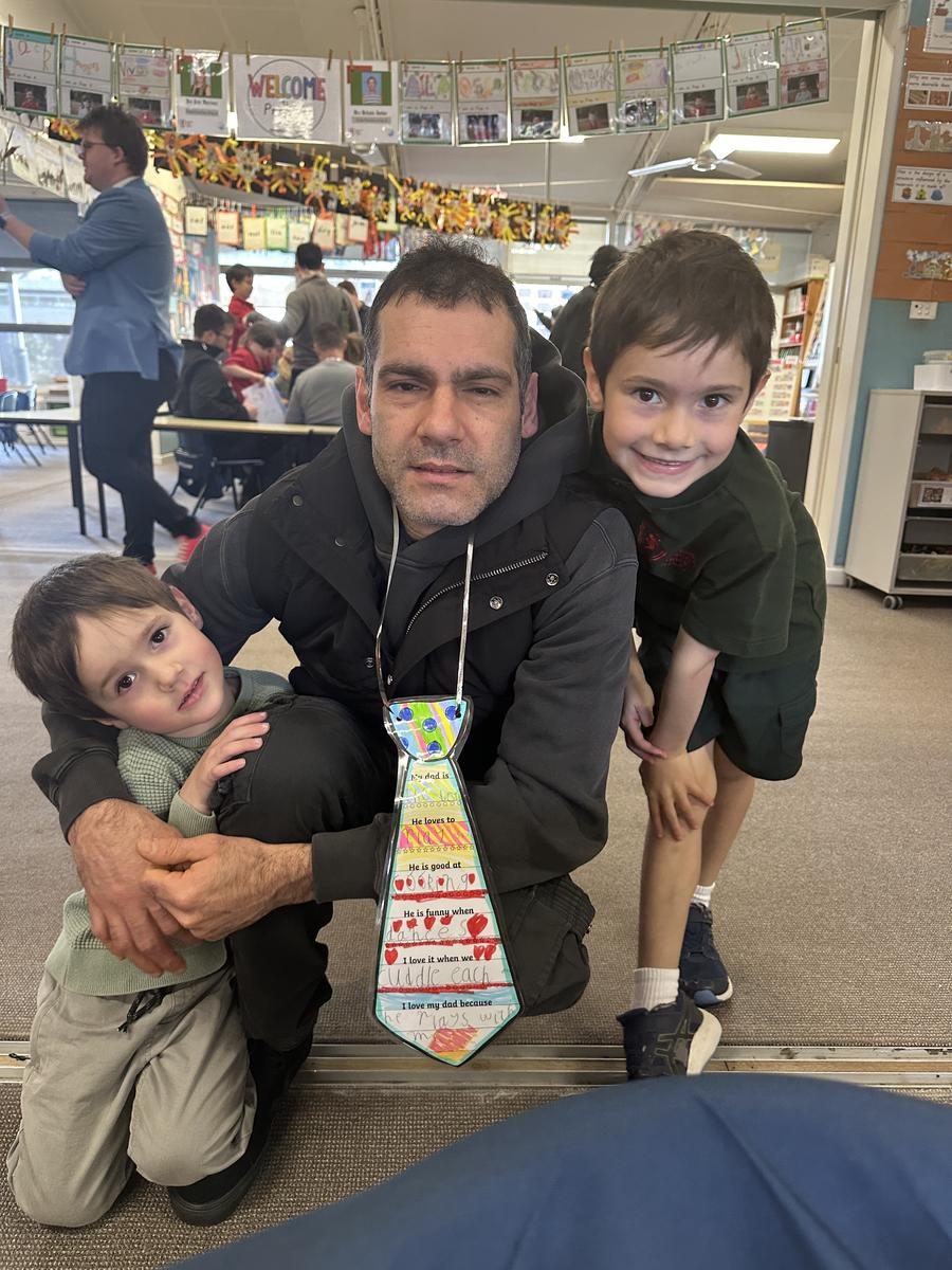 The children made handmade gifts, a colourful tie for each dad or special friend to wear and a placemat decorated with heartfelt messages about why we love them. Everyone loved their presents, and they all put their ties on straight away!