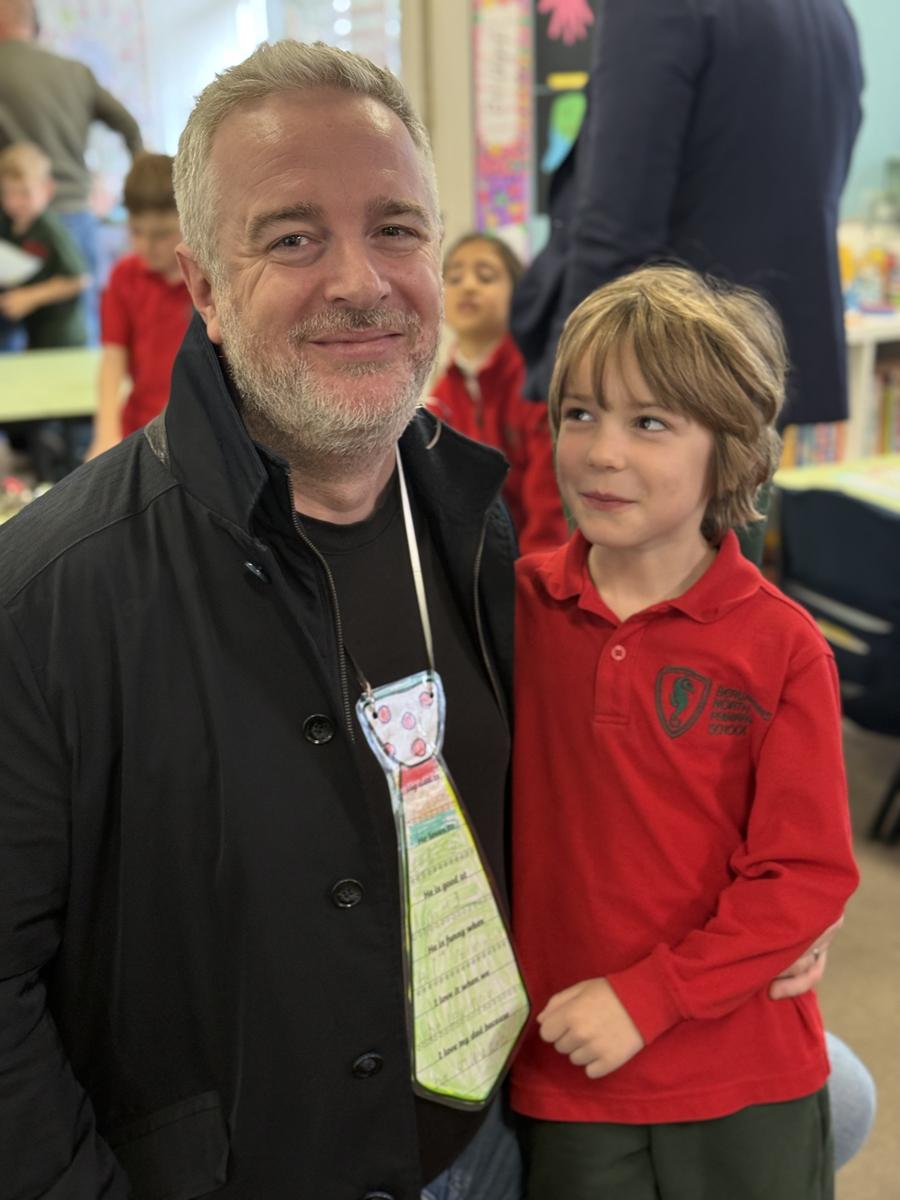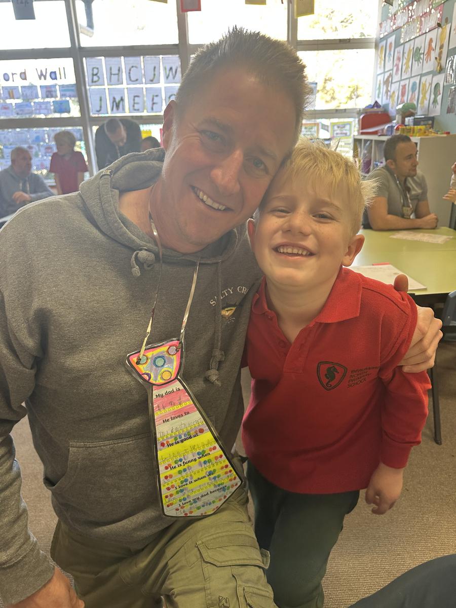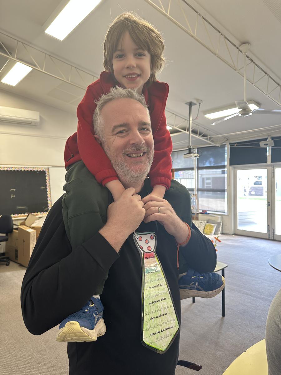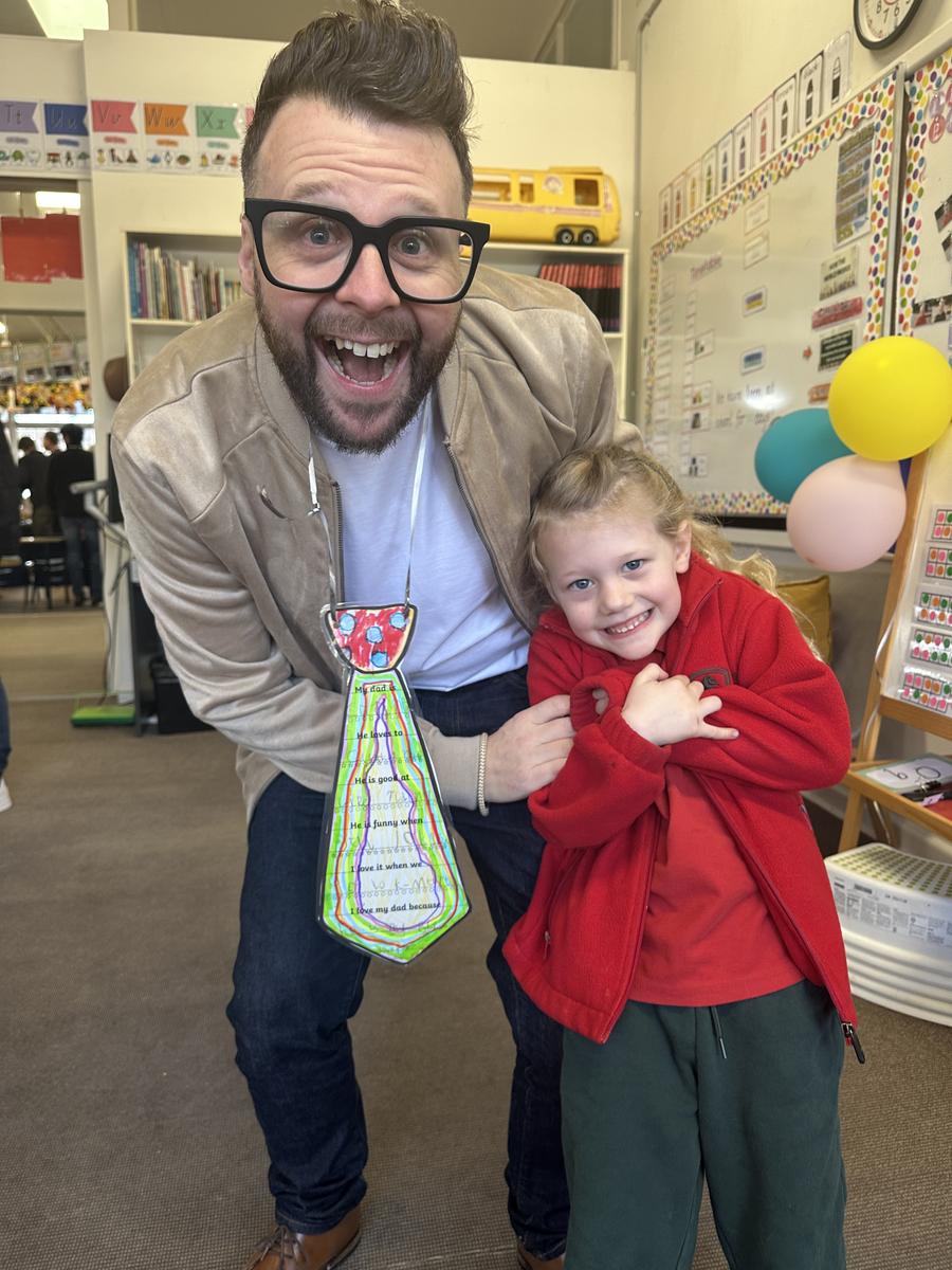 The children made handmade gifts, a colourful tie for each dad or special friend to wear and a placemat decorated with heartfelt messages about why we love them. Everyone loved their presents, and they all put their ties on straight away!