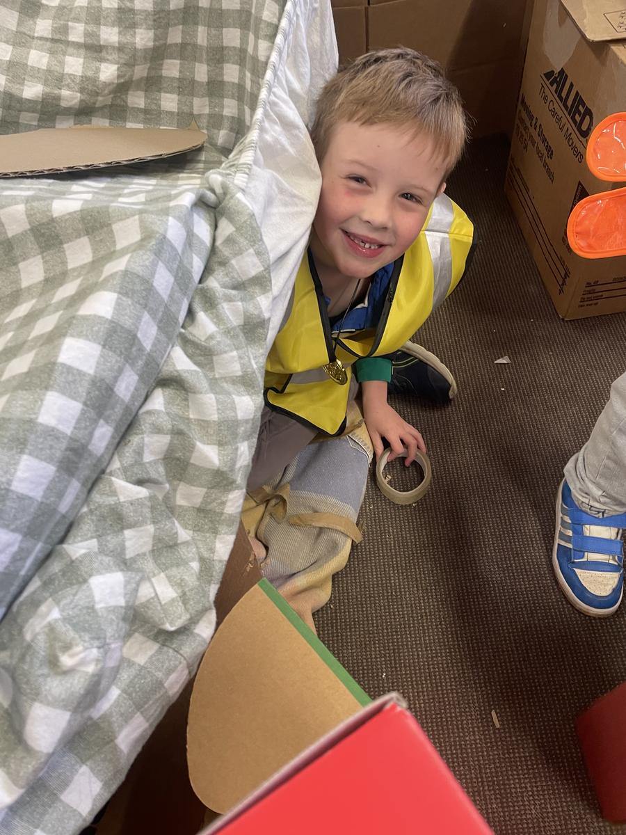 Thank you to all the staff and families for bringing in old boxes, sheets, blankets and tools to make the day a success, we all had so much fun!