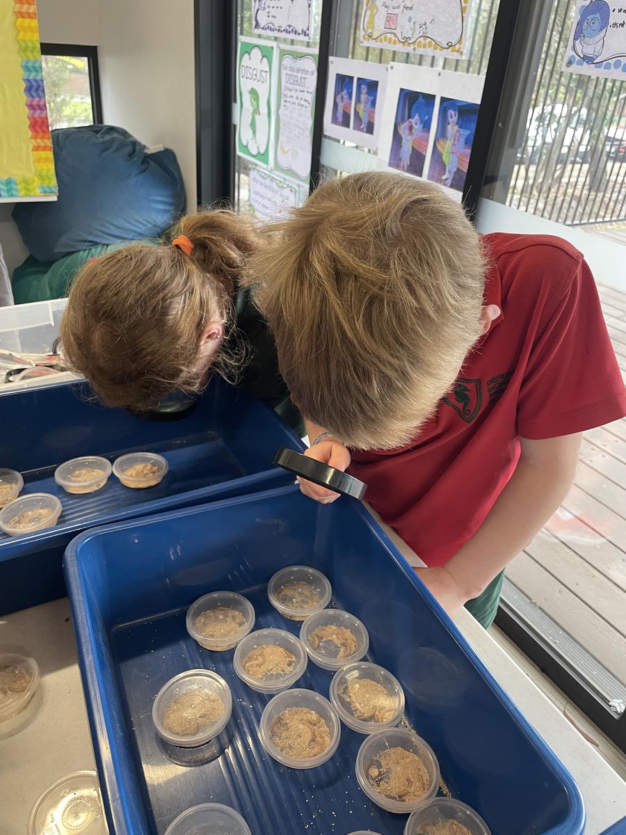 Our central idea for the current Unit, Sharing the Planet is – Living things go through a process of change. It has been so interesting for the Year 2 students to watch some live mini-beasts transition through their lifecycle. We have watched the meal worms start off in their larva stage and were so excited last week to have seen that some of them had turned into the pupa stage.
