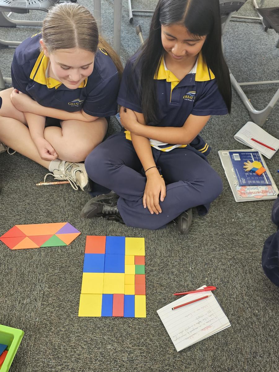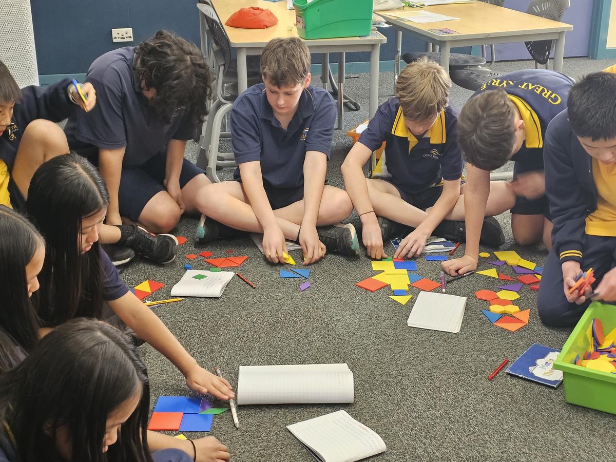In Mathematics, Year 6 students have been exploring a range of engaging and practical concepts. They investigated transformations and created their own tessellating designs to demonstrate translations, rotations and reflections. The Cartesian plane proved to be a highlight, as students enjoyed plotting co-ordinates and seeing how patterns and positions could be represented visually. A strong focus was also placed on money, where students applied their problem-solving skills to real-world scenarios. They calculated totals, worked out the correct change from purchases, and developed strategies for checking their answers. These activities not only strengthened mathematical fluency but also built confidence in applying maths to everyday situations.