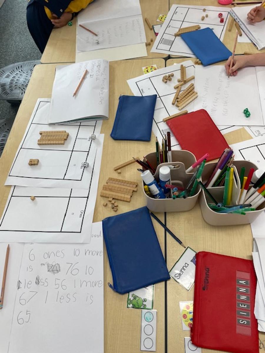 In Math, we finished the term off delving back into place value and deepening our understanding of two-digit numbers. We started exploring three-digit numbers and how the place of the digits really matter to the value it represents. We will continue to consolidate our three-digit numbers next term.