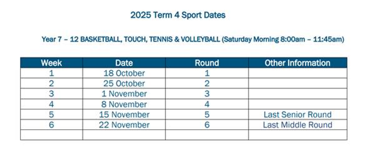 We have nearly finalised teams and coaches and hope to email this information, along with training times in Week 10. We will not have the competition times and venues until just before the games commence in Term 4, Week 1.