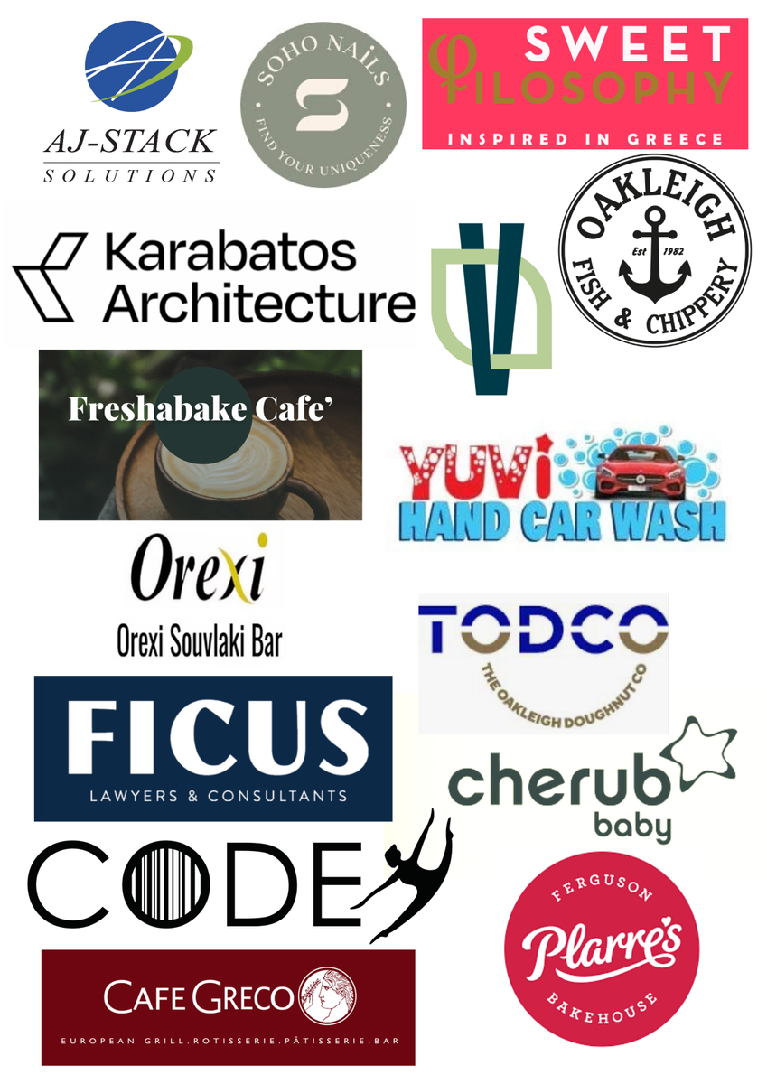Karabatos Architecture, Code Dance, Cherub Baby, Ficus Lawyers, Freshabake/ Melinas Kitchen, Soho Nails, Yuvi Hand Carwash, Orexi Souvlaki Bar, Sweet Filosophy, Café Greco, Vanilla Lounge and Cafe, Oakleigh Fish and Chippery, Ferguson Plarres Bakehouse Oakleigh, AJ Stack Solutions and TODCO - The Oakleigh Doughnut Co.
