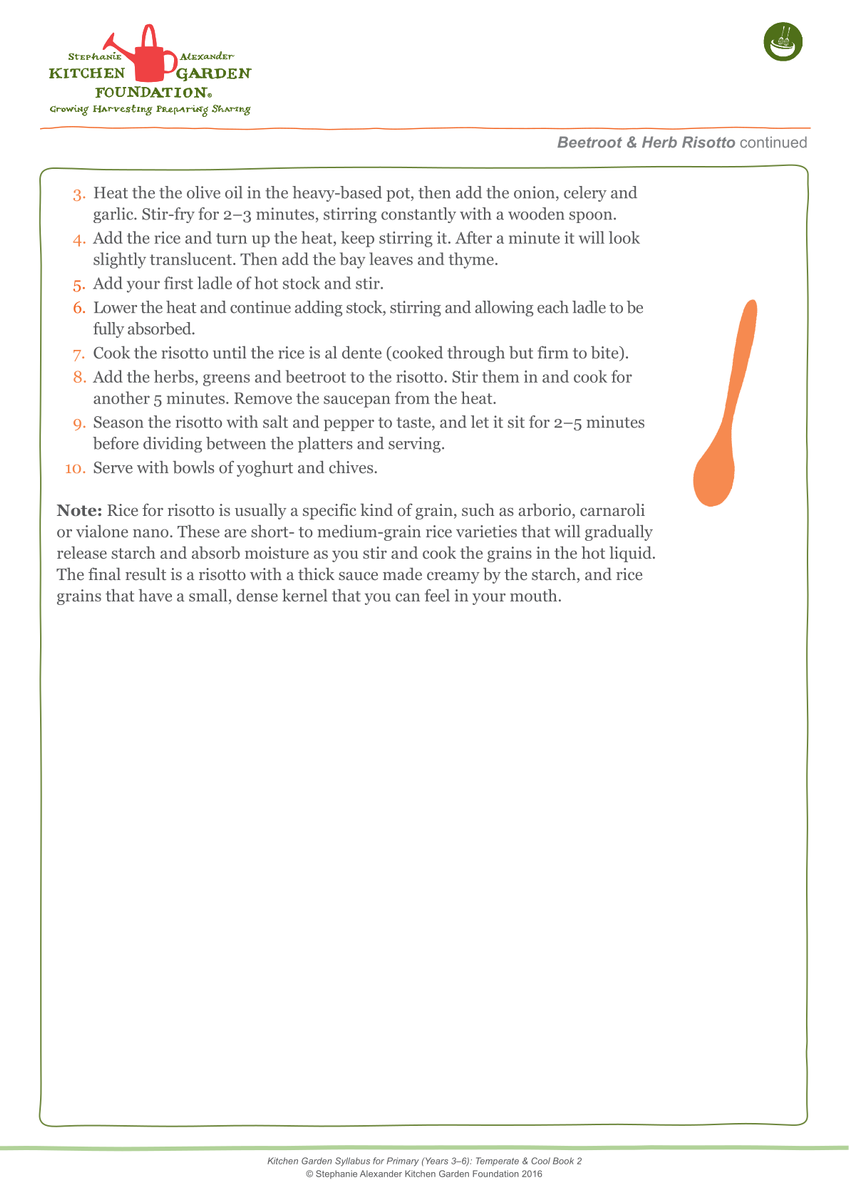 Finally, we are using produce from our garden to cook with. Although some were hesitant to think beetroot would be nice to eat or use in a dessert they were all pleasantly surprised. Fresh beetroot tastes very different to pickled beetroot and the majority really enjoyed our beetroot risotto too. Our warrigal greens are also abundant at the moment, we made warrigal green and ricotta fritters. Warrigal greens are a native plant that is very similar to spinach but a bit sweeter, delicious.