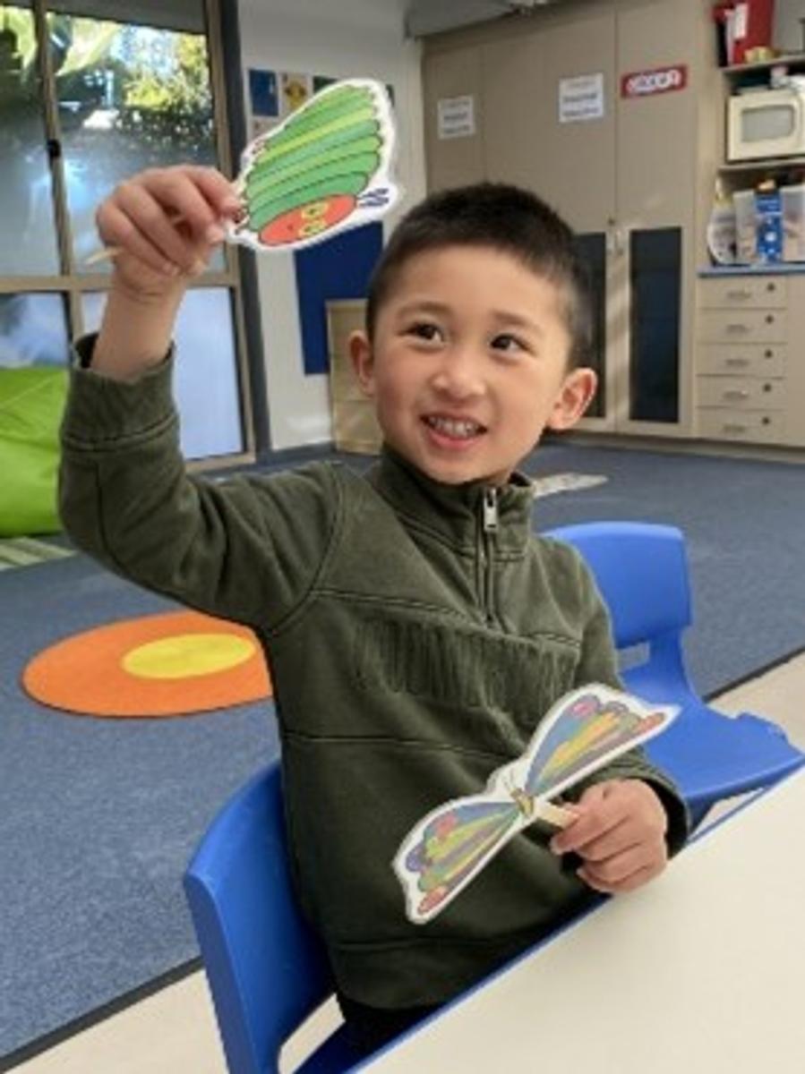 In literacy, students enjoyed a range of animal-themed stories including Brown Bear, Brown Bear, What Do You See?, The Very Hungry Caterpillar, The Very Hungry Caterpillar Explores Australia, and Dinoshapes. They engaged in related group activities such as making stick puppets, playdough and colouring projects inspired by the stories.