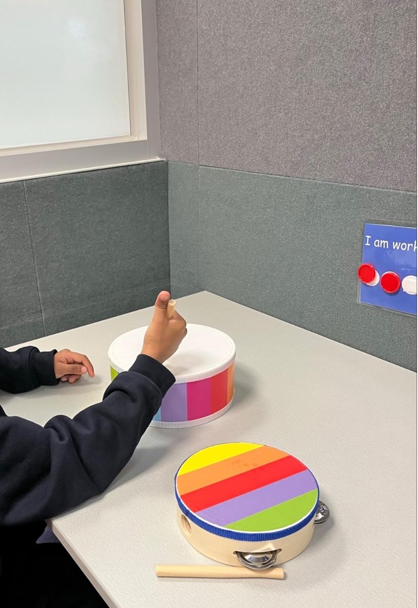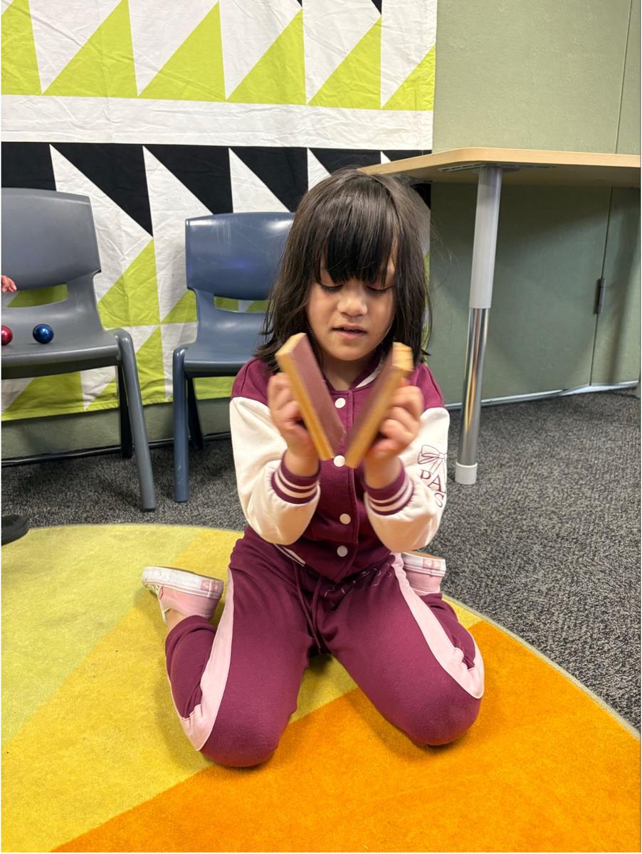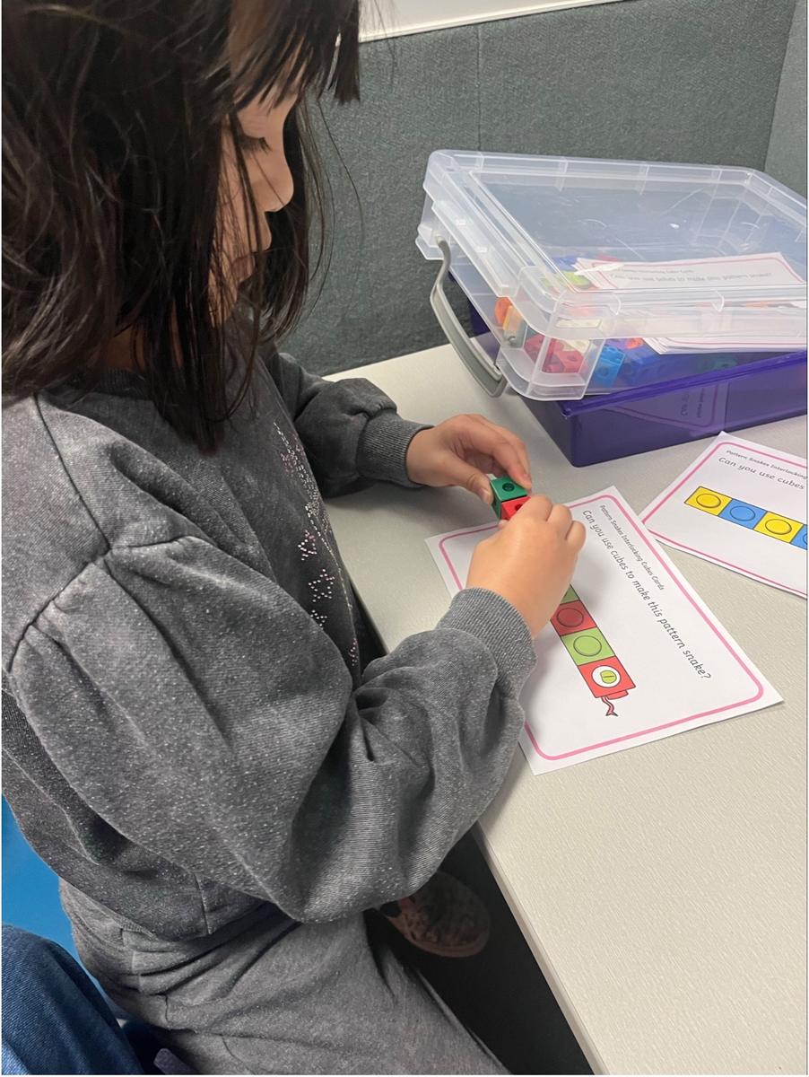 In group 7 we have been learning about patterns as part of Algebra in Mathematics. We have made patterns in many different ways. We have made them with blocks and shapes when working with our teacher. We have also made repeating patterns with picture in our independent work. Our favourite way to make a pattern is with musical instruments. We chose an instrument such as a shaker or drum and then copied a simple pattern. Another way we made a pattern is with sticking pieces of paper in a simple pattern.