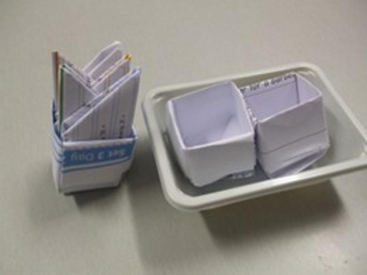 We have used scrap copier paper to make our planter box. These are ideal forseeds that only require two to three weeks to germinate. Since paper is “bio-compatible”, the seedling and the paper planter box can be buried directly into the soil or larger pot.