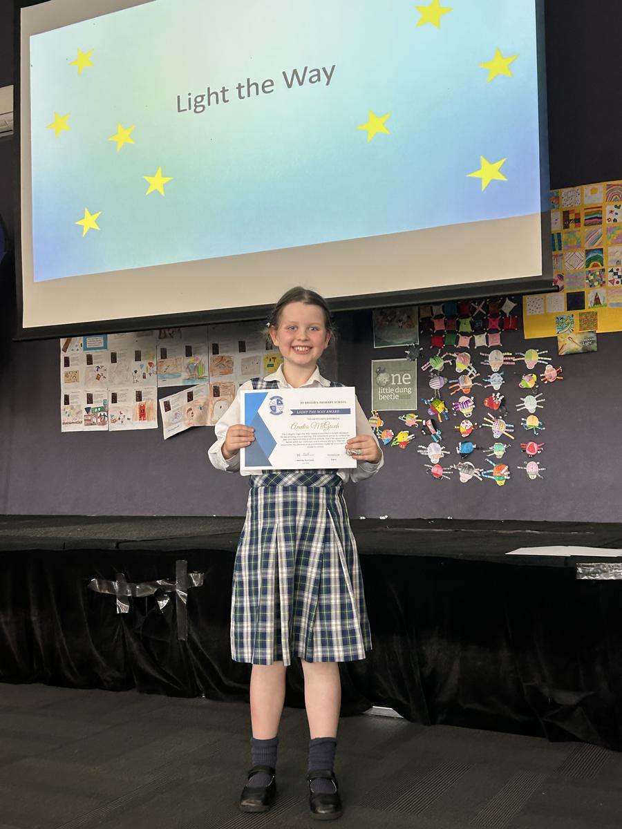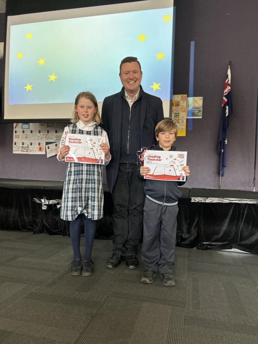 Congratulations to Chloe (Year 3) and Theo (Year 2) for the “Reading Rockstar” Award they received from the Premier’s Reading Challenge. Thanks to Tim Richardson who came to St Brigid’s to present the awards.