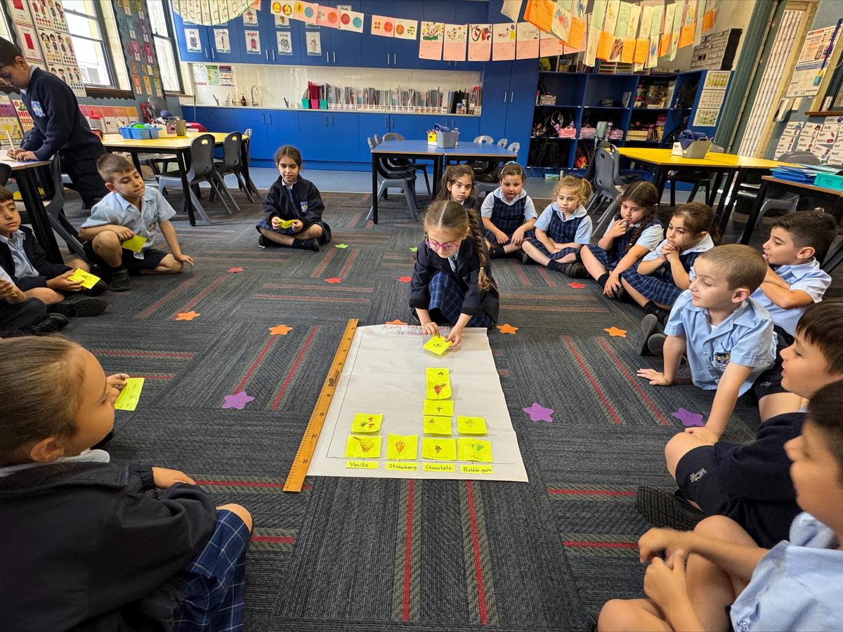 Kindy Red explored data representation in Mathematics. They explored how to gather and represent this in a picture graph. Students were asked what their favourite ice-cream flavour was, looks like chocolate is a clear winner.