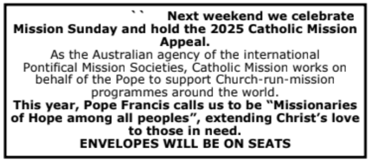 This Sunday at 8:30am, St Joseph's Church will be holding the 2025 Catholic Mission Appeal