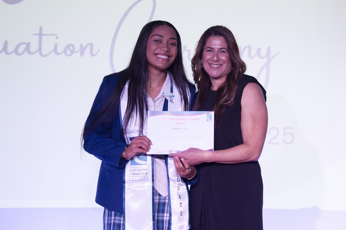 The Change-Maker program provides students with the opportunity to share their ideas, connect with other like-minded people and be immersed in a unique Olympic experience, hearing first-hand from Olympians. Our 2025 Caroline Chisholm Olympic Changemaker recipients are Nekea Talaia and Hannah Ison of Year 12.
