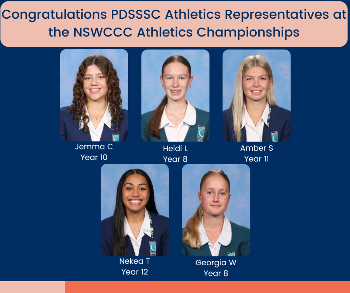 On Monday, 15 September, five Caroline Chisholm athletes represented the PDSSSC at the NSWCCC Athletics Championships at Sydney Olympic Park. Those students were as follows -