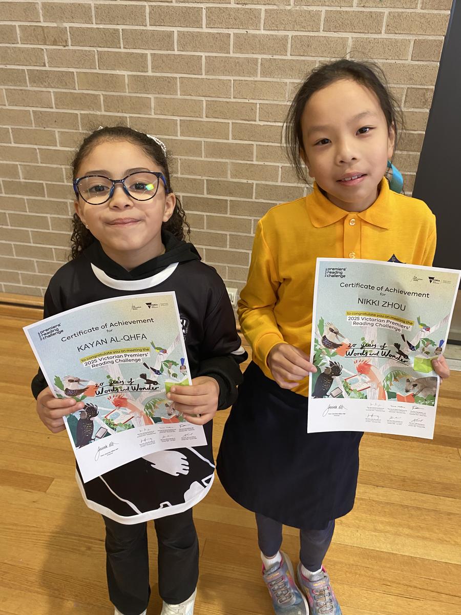 At our final assembly for Term 3, we proudly recognised the students who took part in the Premier’s Reading Challenge. Their commitment to reading and their love of books was inspiring to see. The photos captured the pride and excitement on their faces as they celebrated their achievement. Congratulations to all participants—you have made our school community very proud!