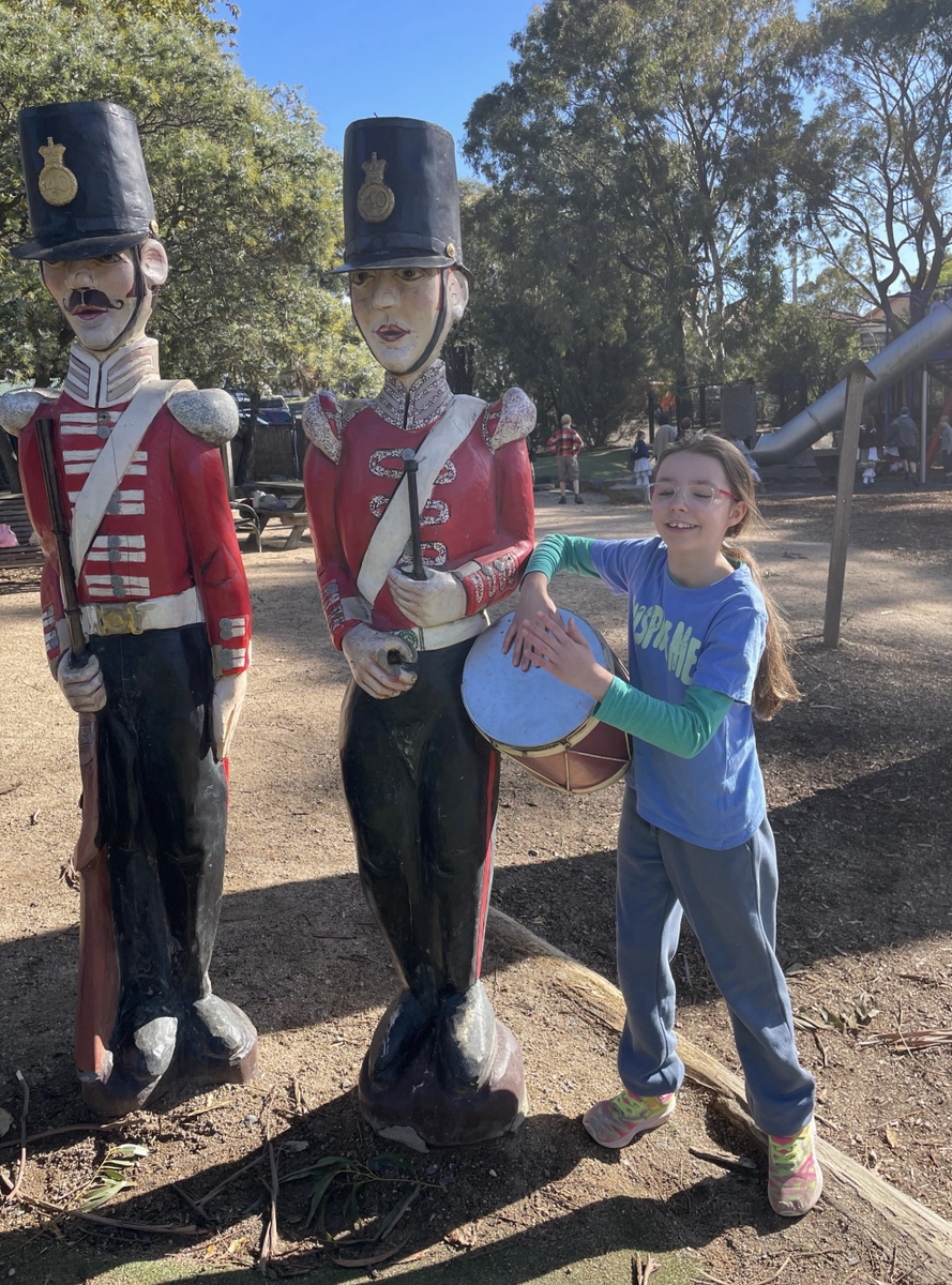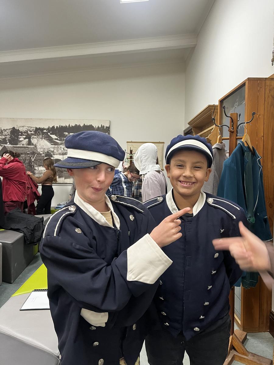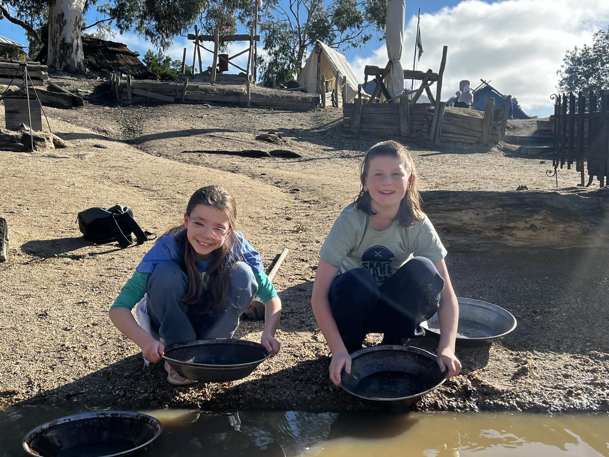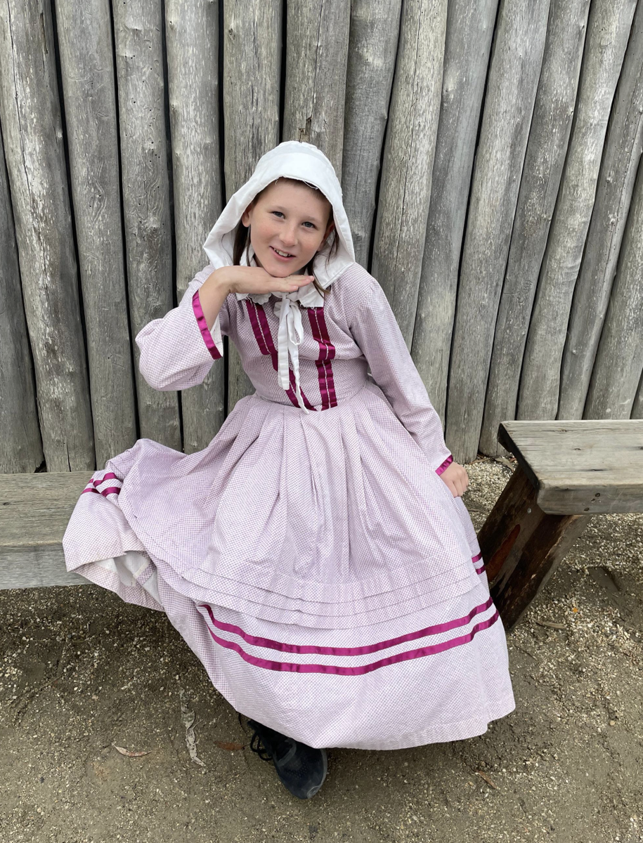 We walked from our cabins down to the eureka education session. We found out about the wars, redcoats and soldiers and we got to do a play and dress up in all the old styled clothes. I was a miner and got to hold a spear towards the end of the play. We all went inside and talked about the eureka flag and why its important. - Tatum
