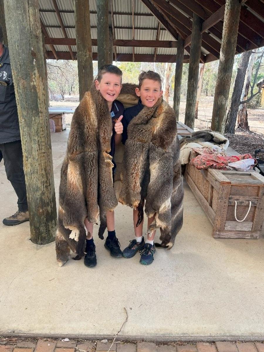 On Tuesday 3rd June Lewis, Seb and Ebony went to Euroa for the arboretum cultural experience as part of Reconciliation Week. We started with a smoking ceremony to wash all the bad spirits out of your body. Next, we went for a walk around the lagoon and tried reeds. They were chewy but tasted good. Then we walked to the wattle tree where we tried natures lollipops. It’s what aboriginal kids used to eat because they didn’t have lolly shops. It was quite tacky, but it didn’t taste of much. Once we had finished our lollipops we walked back to the shelter where morning tea was prepared. We had lemon macadamia cookies, white chocolate chip muffins, fruit and tea. Seb tried tea for the first time and his favourite was spicy chai and it was also Lewis’s favourite. After we finished morning tea we did an art piece with aboriginal art styles. Everyone did well! Finally, we got a photo with the possum skin cloak. It was warm. It was a great day out and we learnt so much.