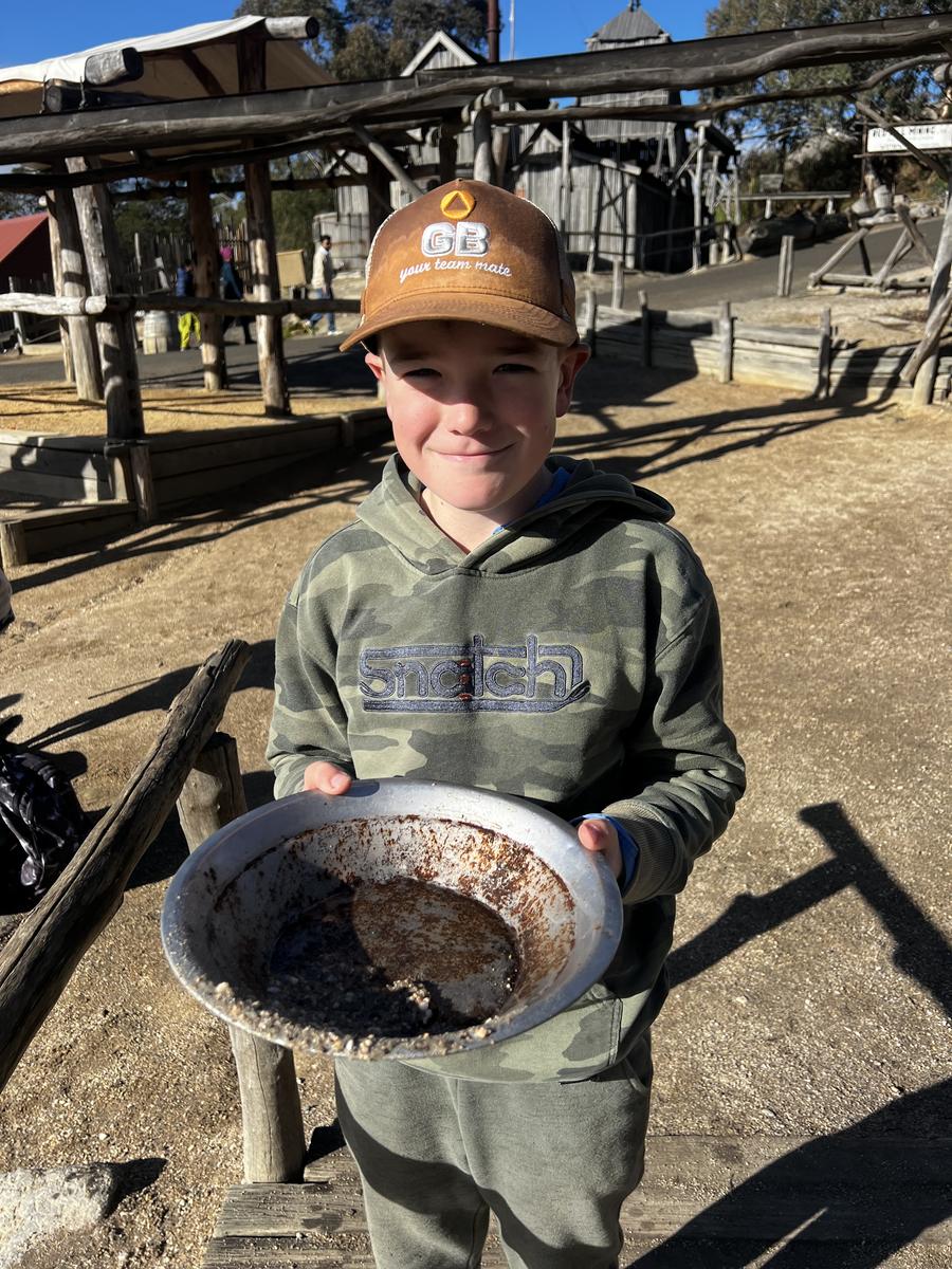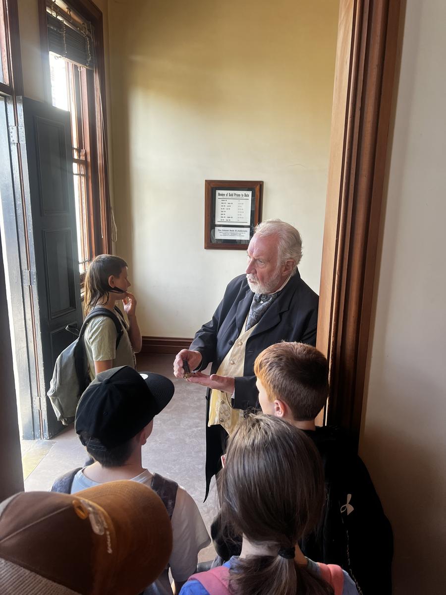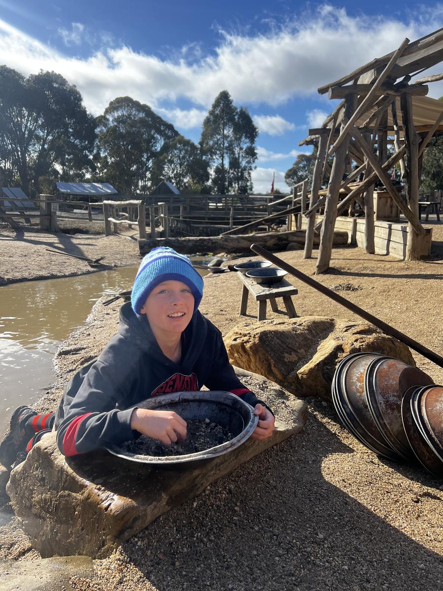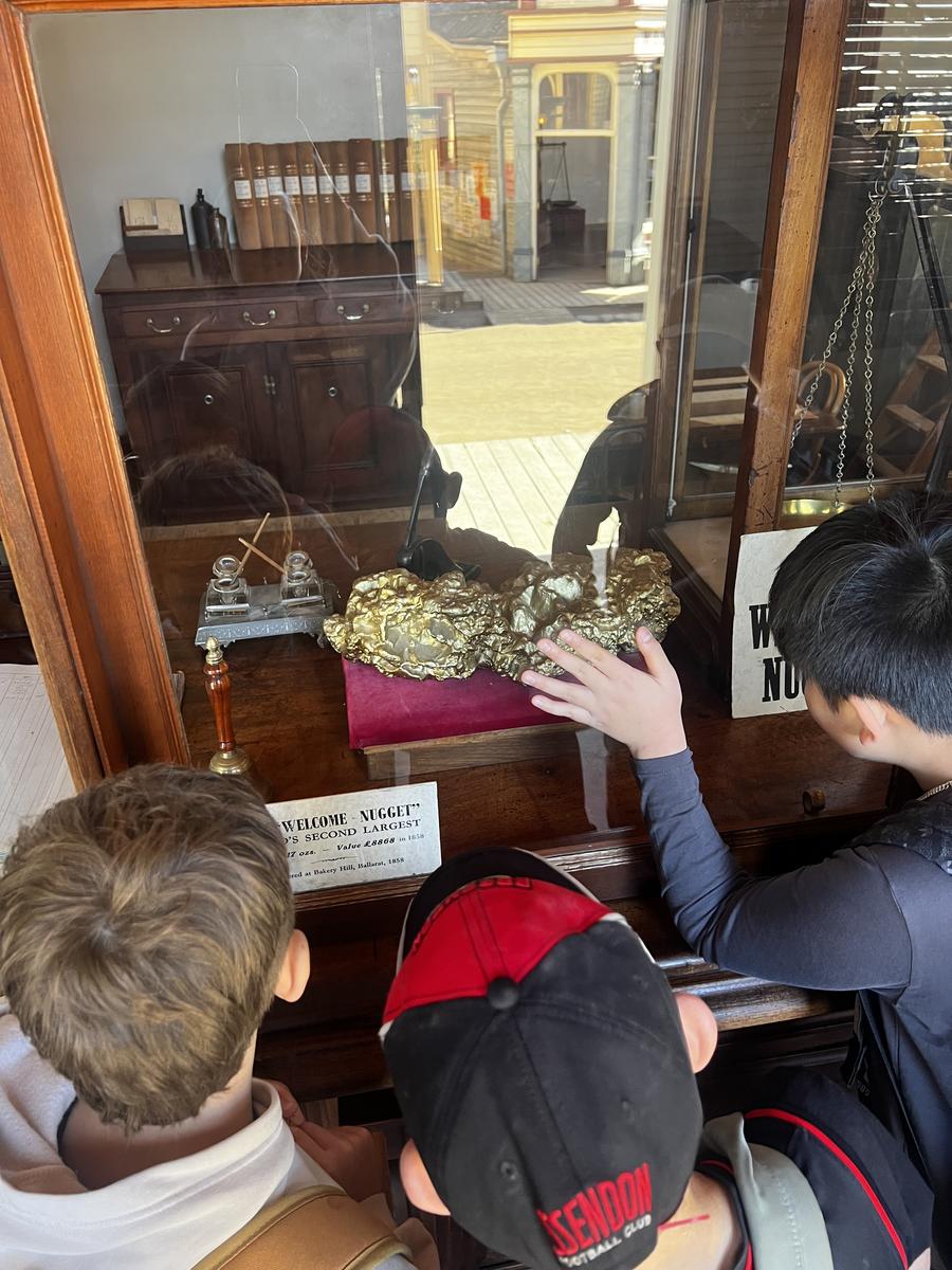 We stopped in at the Sovereign hill bank and as soon as we walked in the door there sat a giant gold nugget actually the worlds second largest gold nugget. Then we talked to to this man which was so cool, 1 ounce can sell for close to $5000. It was an amazing experinece and I am so thankful for all that we got to do at Sovereign hill. - Eli