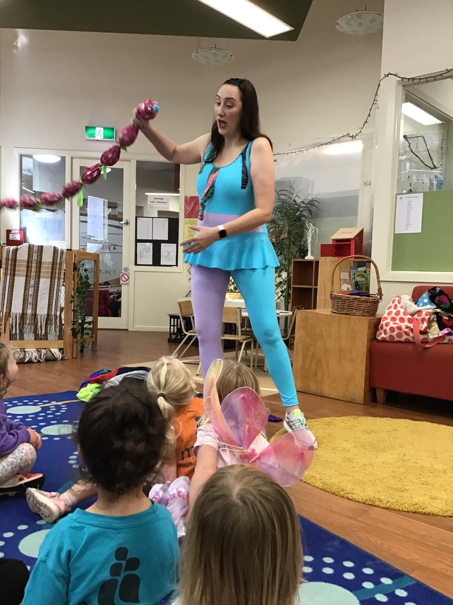At the end of term 1, K3 Rosella and Bluebird groups participated in an incursion with Wiggerly Worm Dance Company. The children danced, listened to stories, acted out stories, dressed up and pretended. Every child was fully engaged for the whole hour and a half and didn't want it to end.