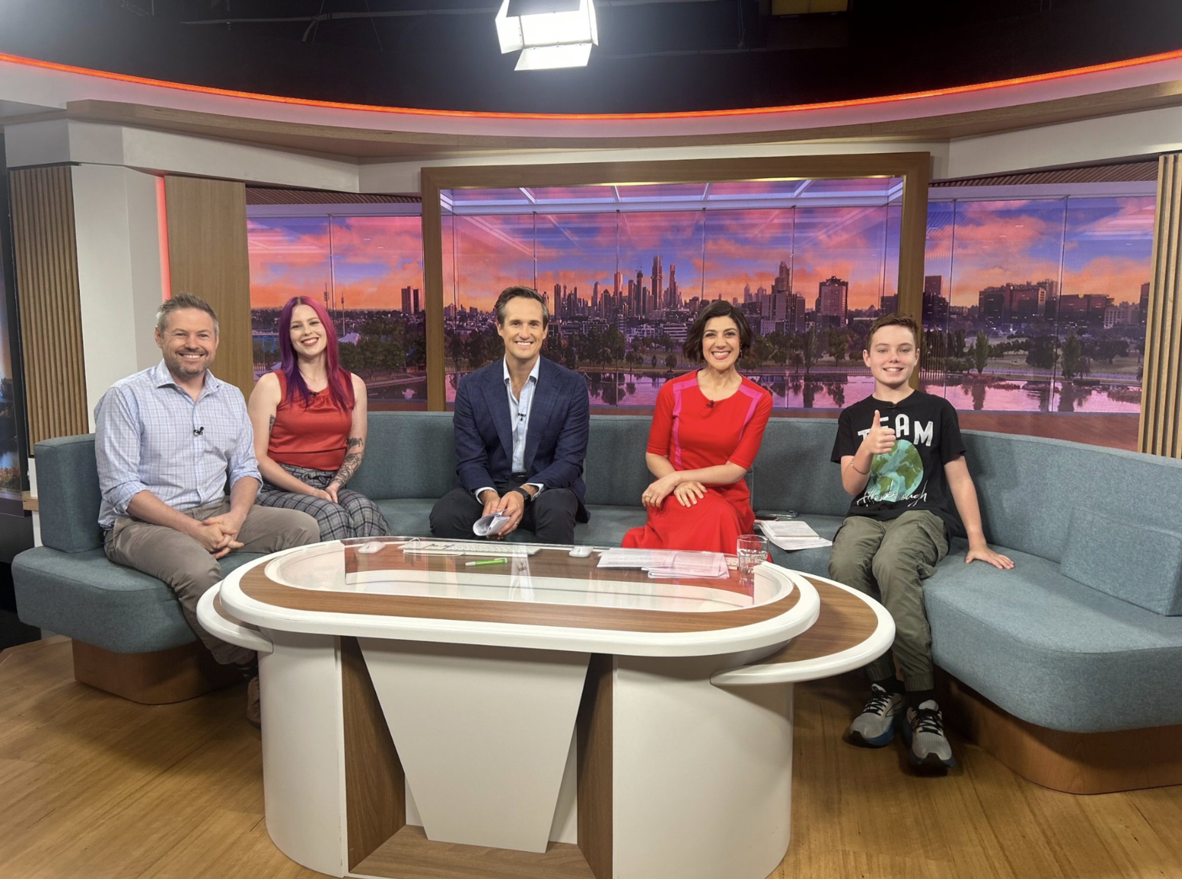 While waiting to go live on ABC News Breakfast, the weatherman kindly showed me the cameras which were incredibly high-tech! I even got to use the remote while the weatherman was presenting the forecast, which was a lot of fun. He also gave me a tour of the studio, and I was amazed by the number of screens everywhere. One of the highlights for me was when James, the news breakfast host, commented on my shirt. I've been part of Team Attenborough all my life, so that moment felt really special. And yes— I also pinched one of the chocolate strawberries too!