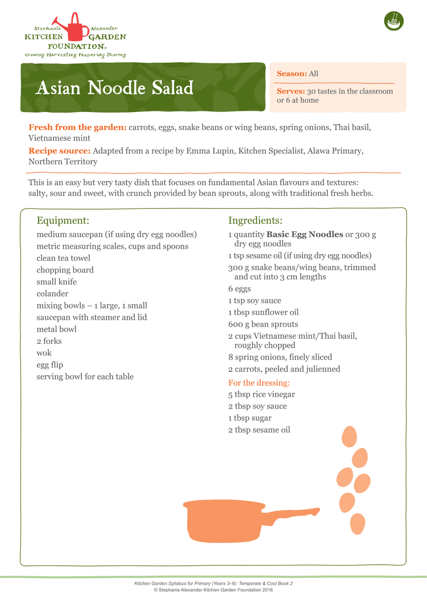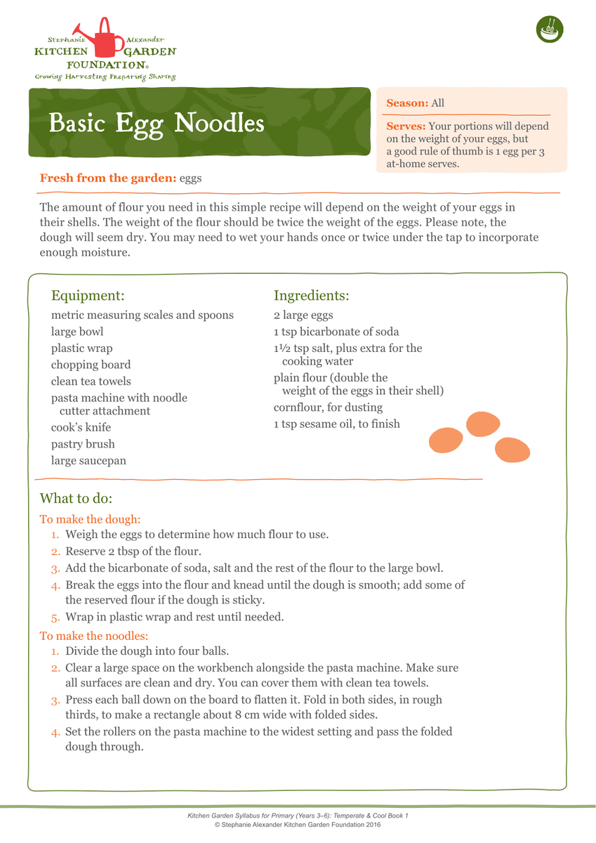 I have attached the recipes for this fortnight, the highlight was making their own noodles for the noodle salad. Although the yo-yo biscuits were devoured!