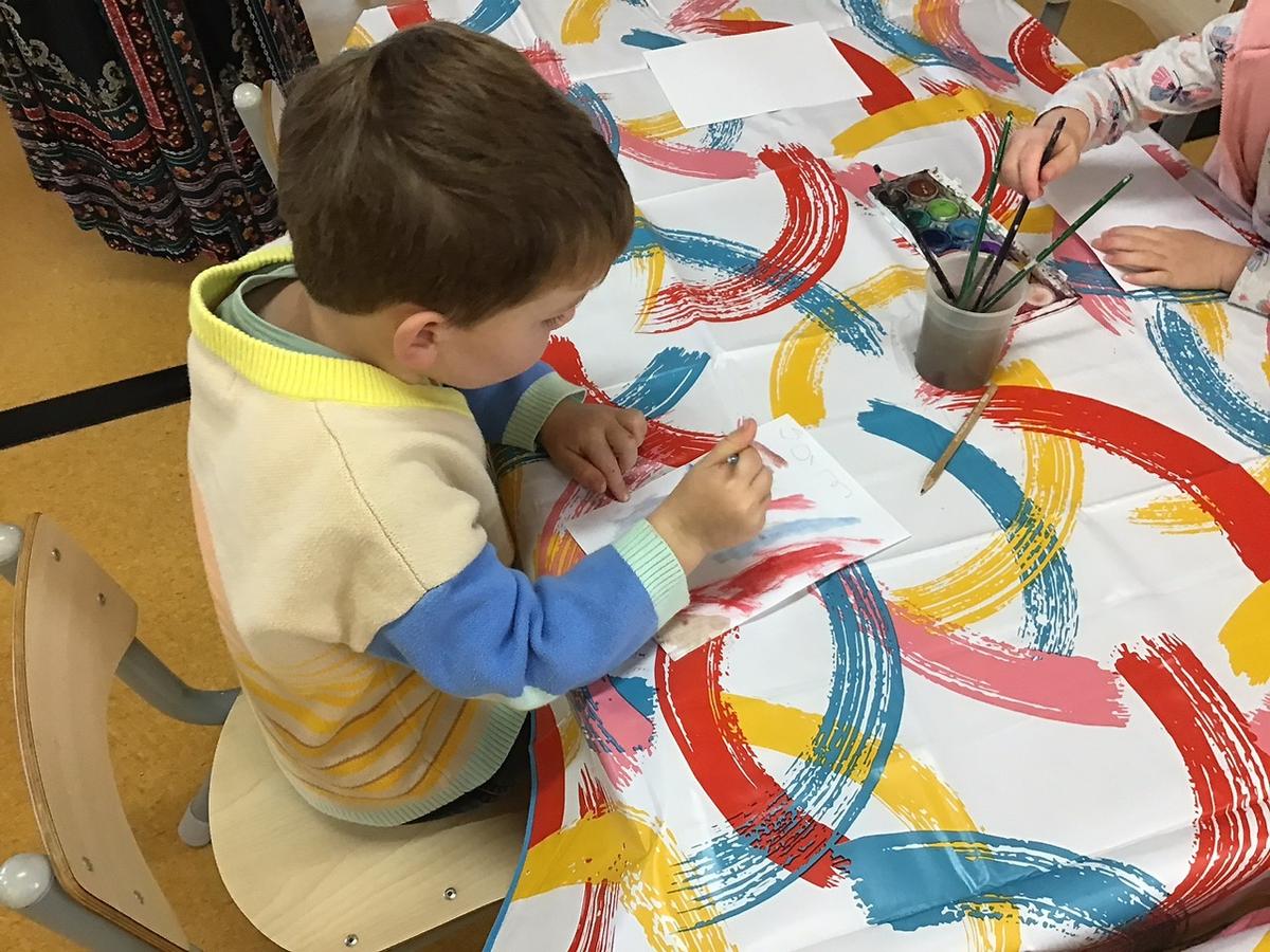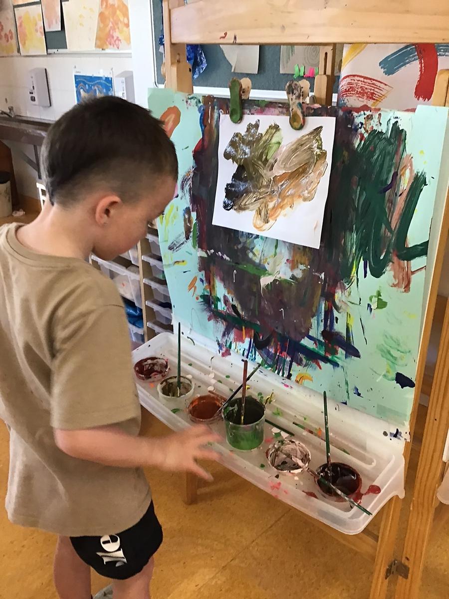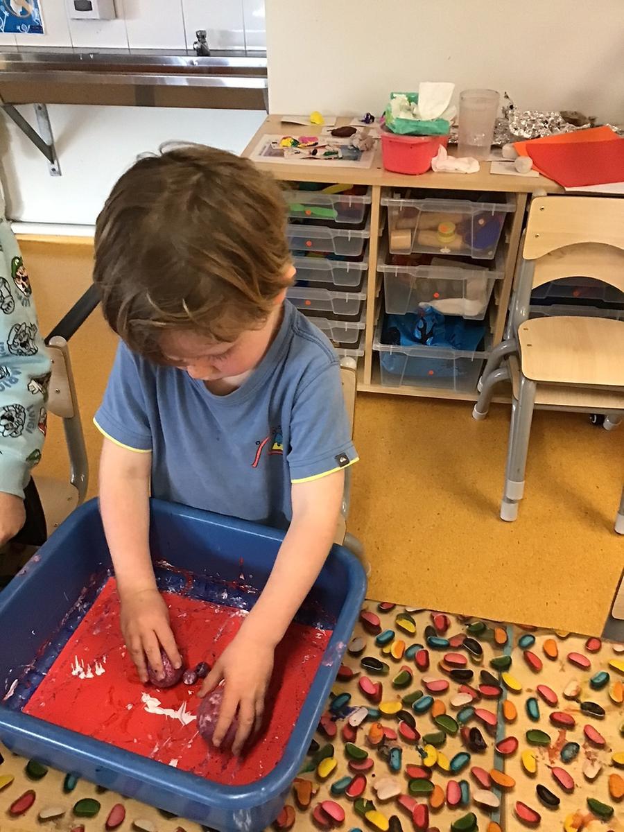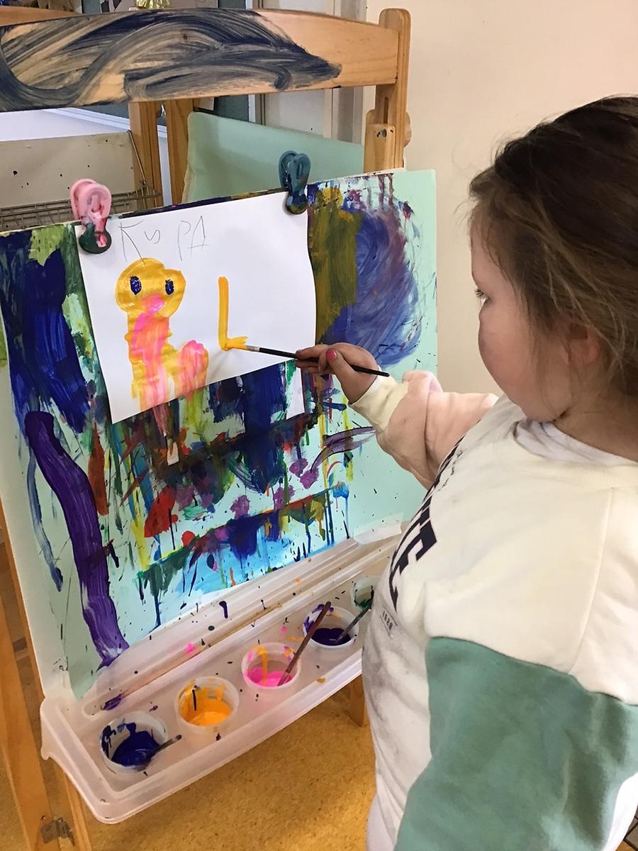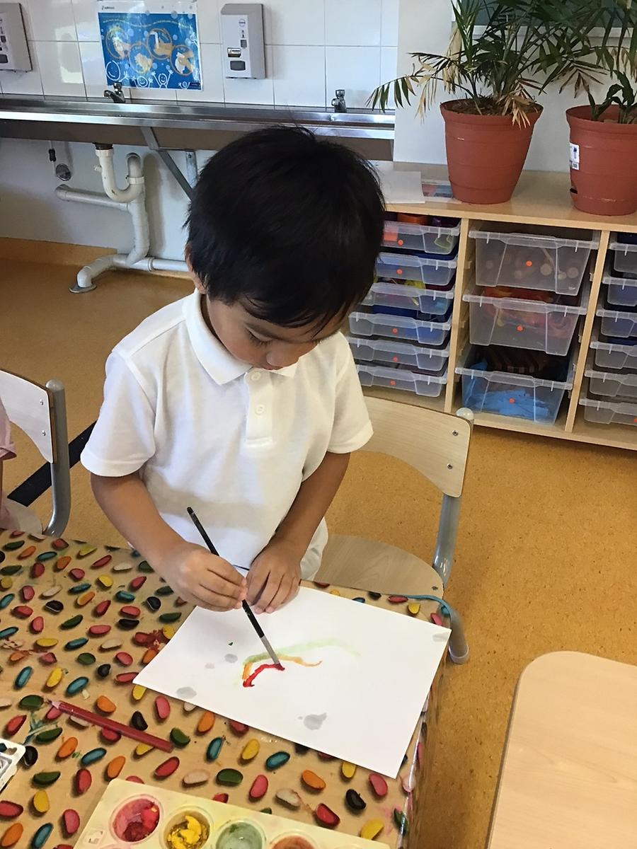 Throughout the year the children have been exploring what they can do with the painting and drawing resources that we have set up in our learning environment. I wanted to mention here that all children have to experiment and play curiously with paint and pencils to see what these can be used for. In time the children gain more control of the pencils, brushes and paints and start to create more recognisable images.