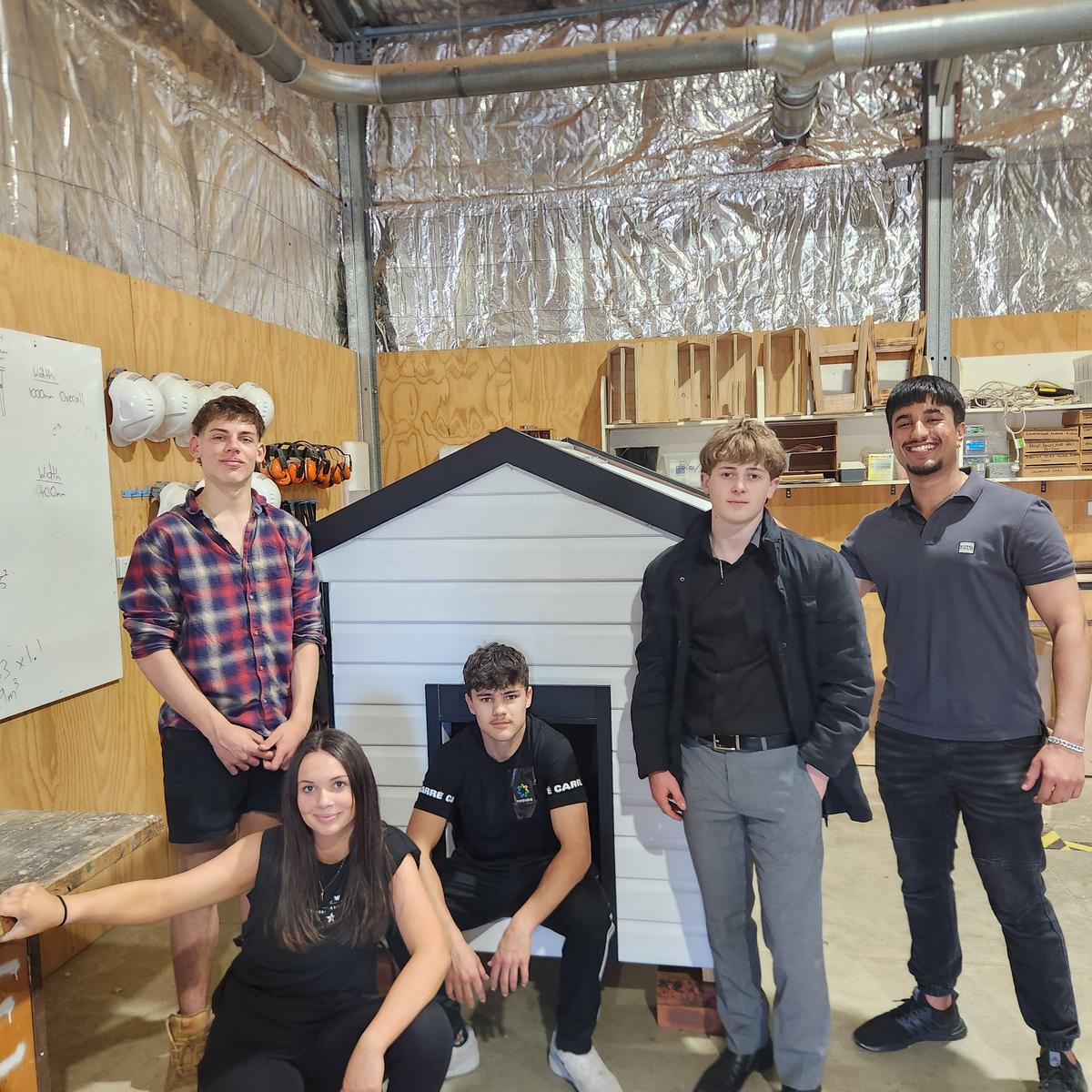 The Yr 12 Construction class have been working hard to complete their 'Group Projects'. The finishing touches were applied last week to the two projects, a dog kennel and a chicken coop. The group project aims to give the students the skills in teamwork and communication, along with reading and working from plans and handling construction tools and materials.