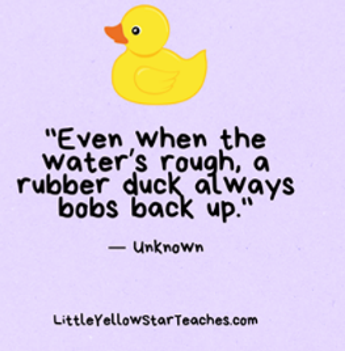 Like our little yellow plastic ducks we are resilient, we continue to navigate and adapt to change, encounter, but successfully overcome obstacles whilst continuing to move forward. I like to think we have a little piece of a tiny yellow duck within us all!!!!