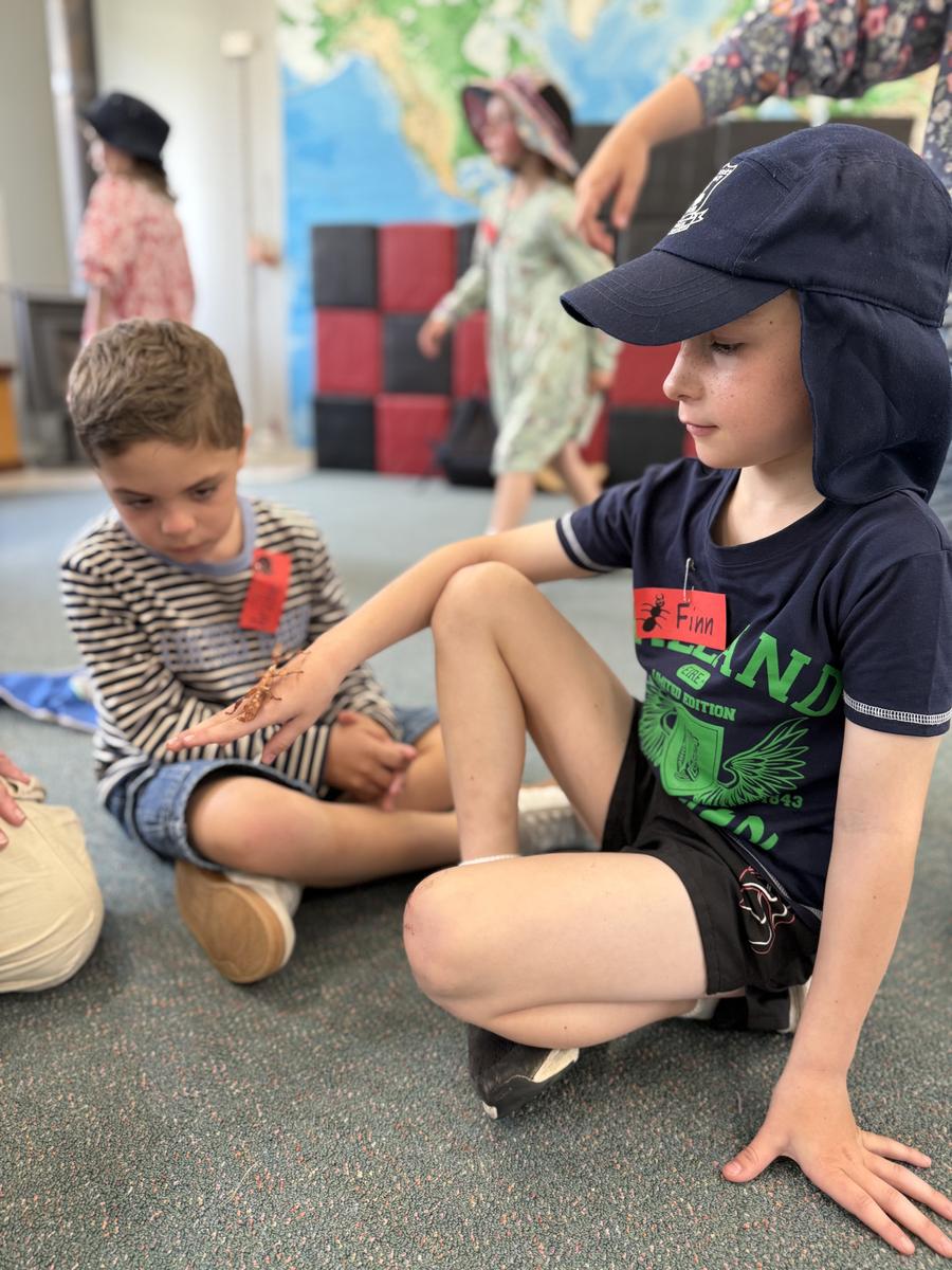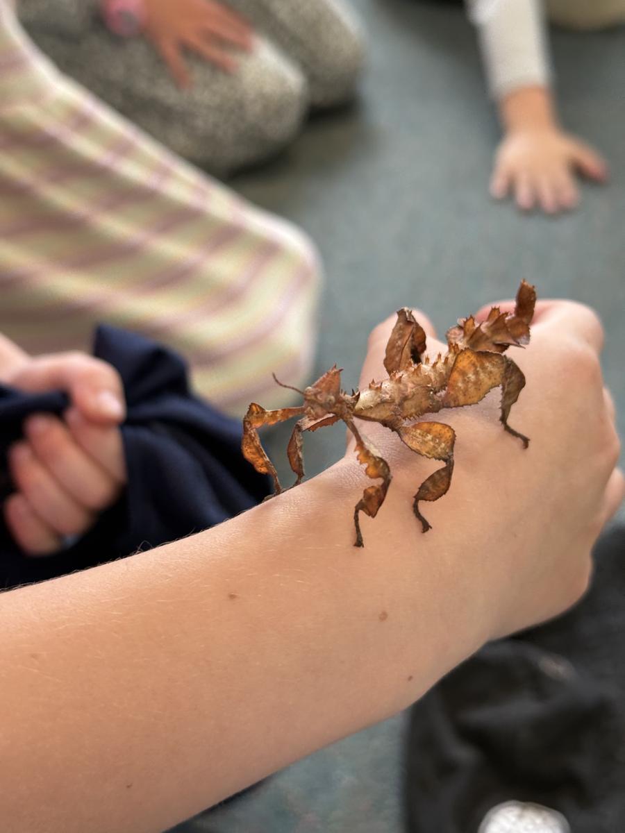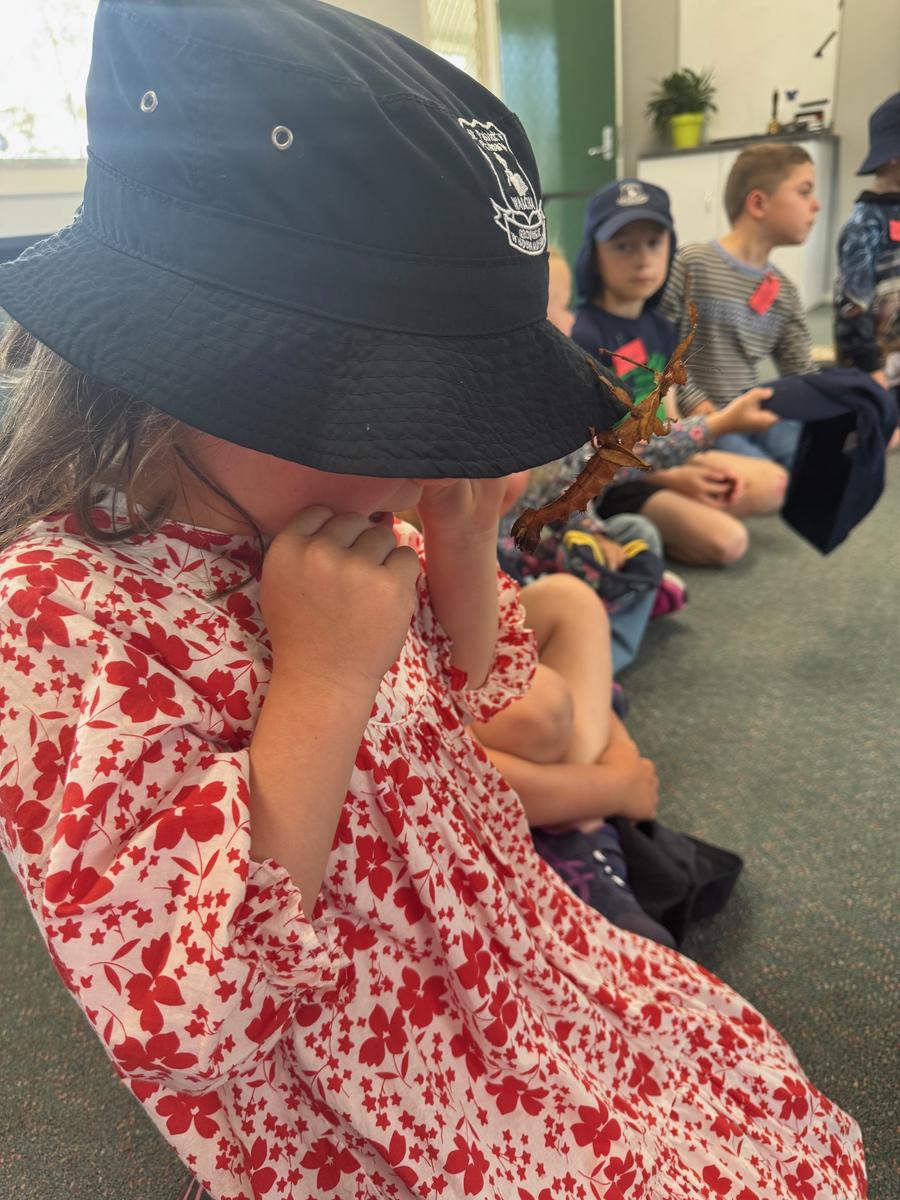 We began our day investigating what living things need to survive. The students enjoyed observing and discussing the basic needs of plants and animals — plants, air, water, and shelter. One of the highlights of the morning was meeting a curious little leaf insect! There were lots of gasps and giggles as the brave took turns gently holding this fascinating creature and noticing how well it camouflaged itself among the leaves.