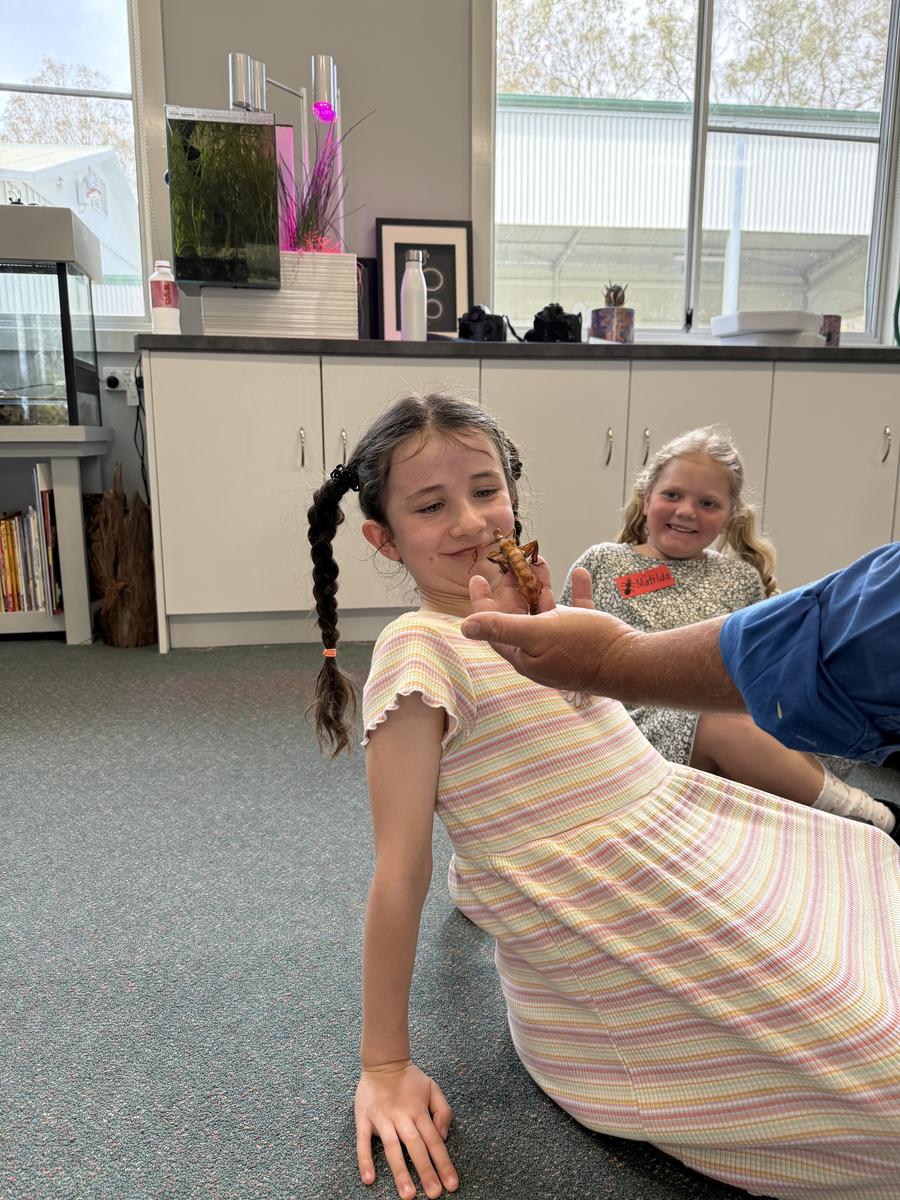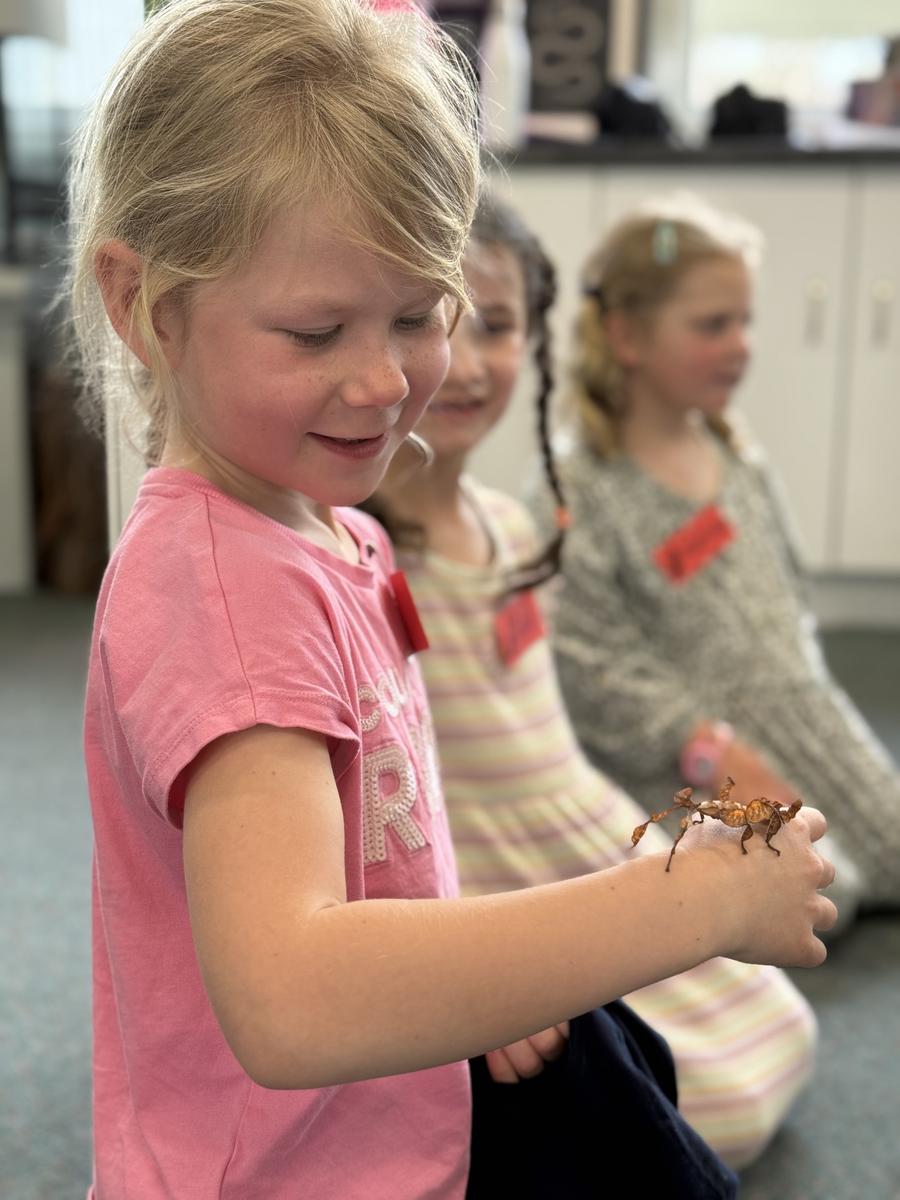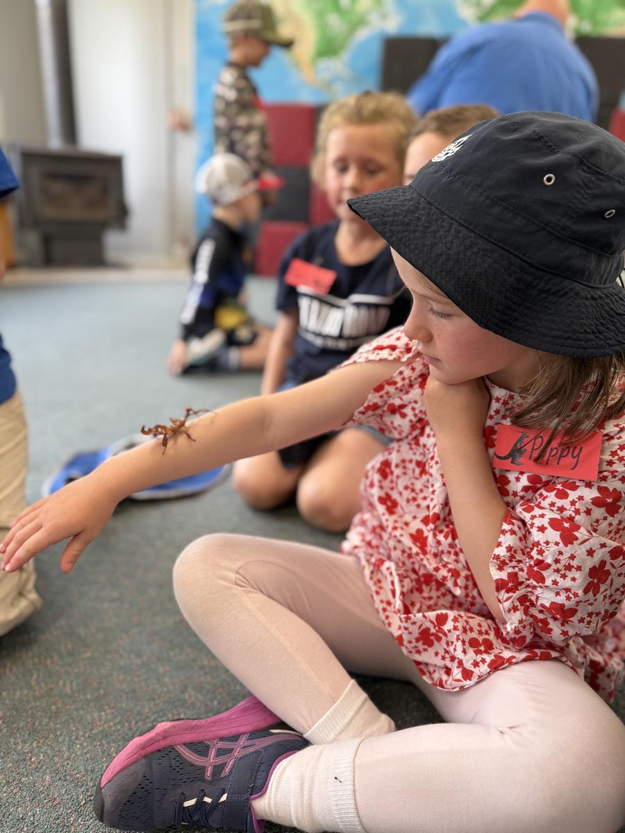 We began our day investigating what living things need to survive. The students enjoyed observing and discussing the basic needs of plants and animals — plants, air, water, and shelter. One of the highlights of the morning was meeting a curious little leaf insect! There were lots of gasps and giggles as the brave took turns gently holding this fascinating creature and noticing how well it camouflaged itself among the leaves.
