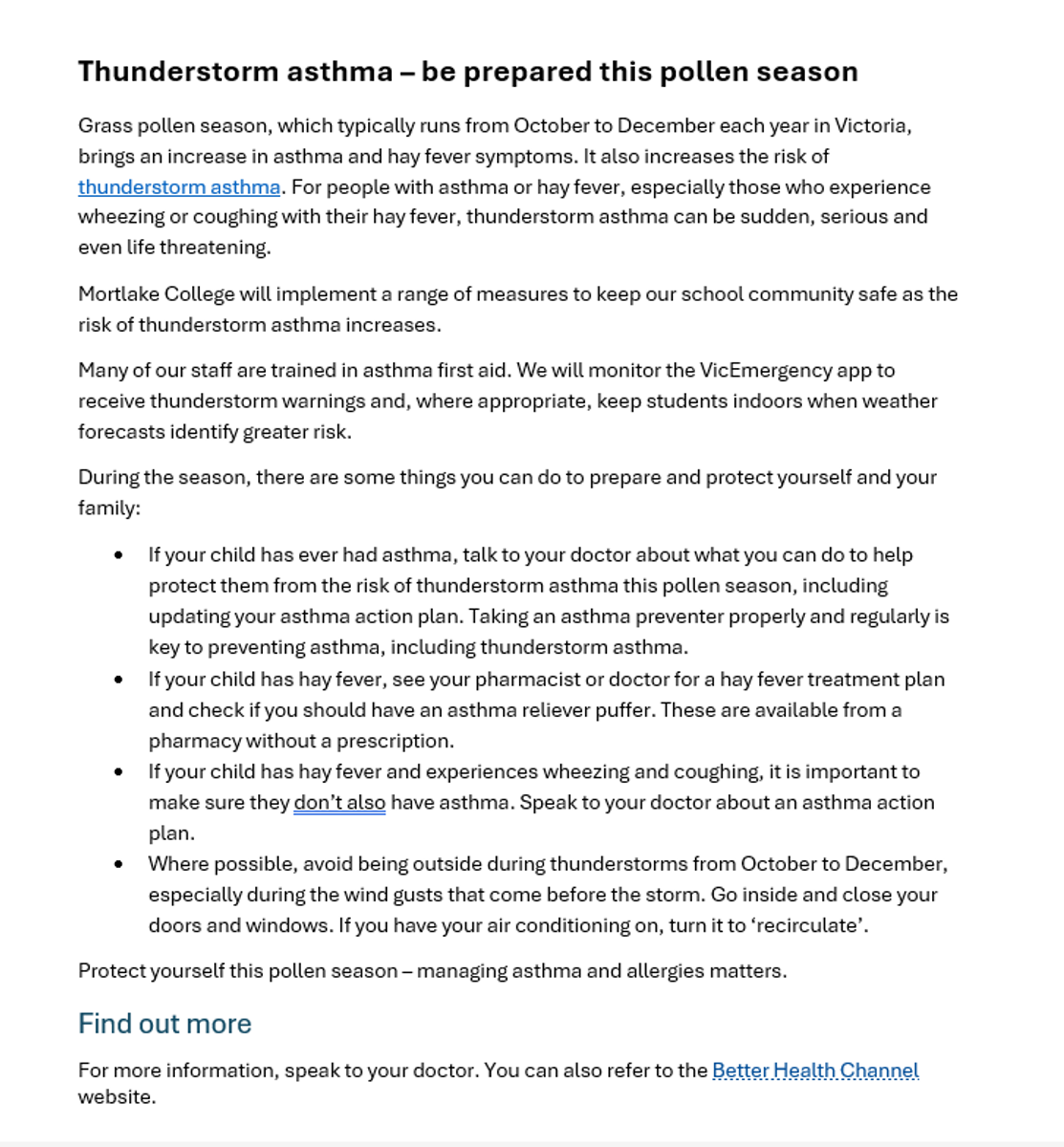Please take time to read our school’s collection notice, found on our website https://www.mortlakep12.vic.edu.au/page/48/Policies .