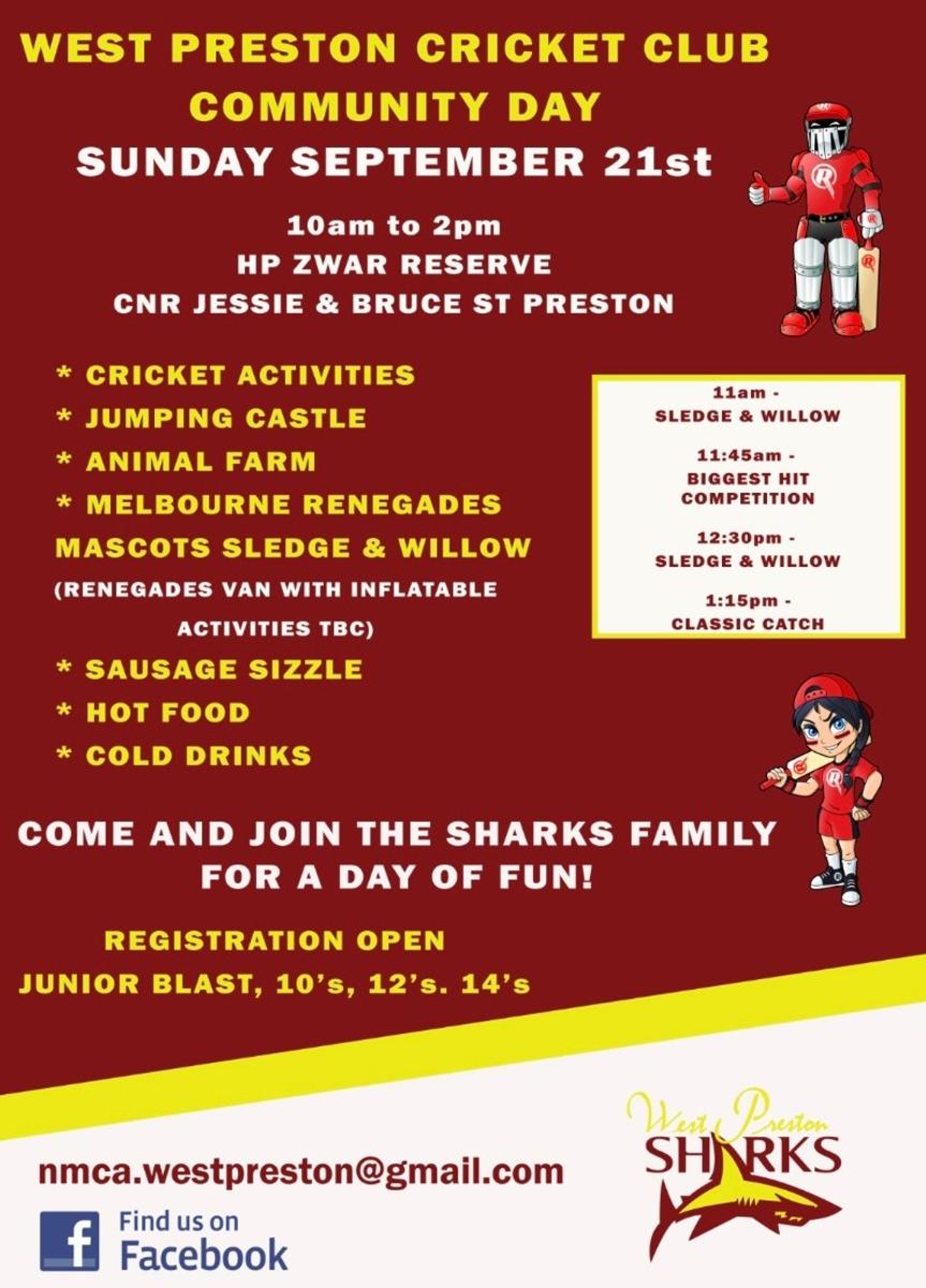 Bring the family to Zwar Reserve in Preston to enjoy fun activities, feast on yummy food and learn more about playing cricket with the Sharks.