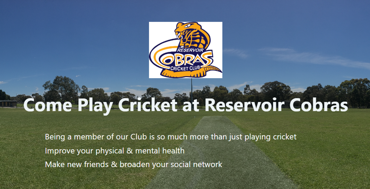 It's cricket recruiting time for the Reservoir Cobras. The club is based at C.T. Barling Reserve, 880 Plenty Rd, Reservoir. Under 10s play Sunday morning and train Wednesday from 4.45pm. Under 12s & 14s teams play Friday evenings and train Tuesdays from 5pm.