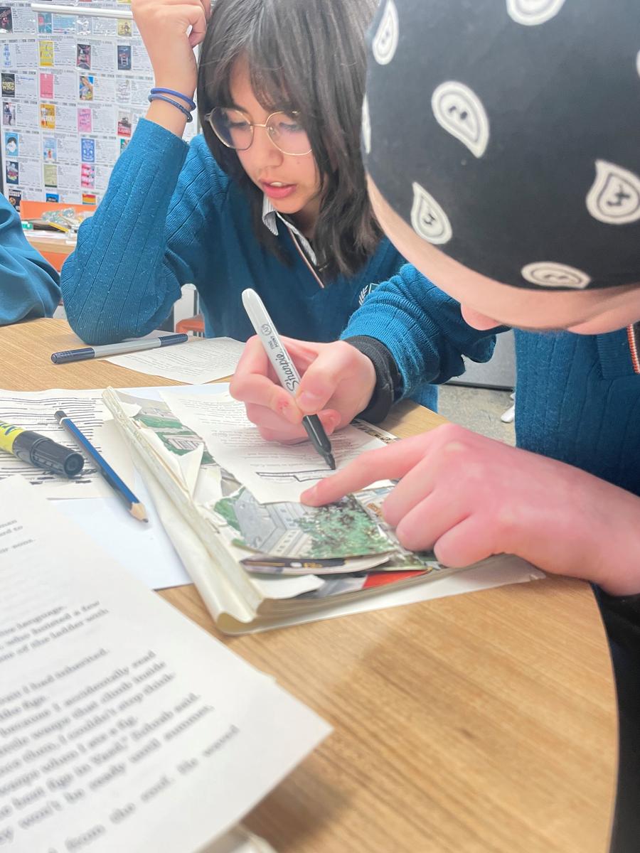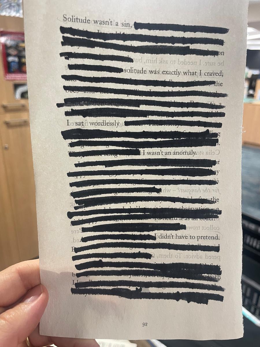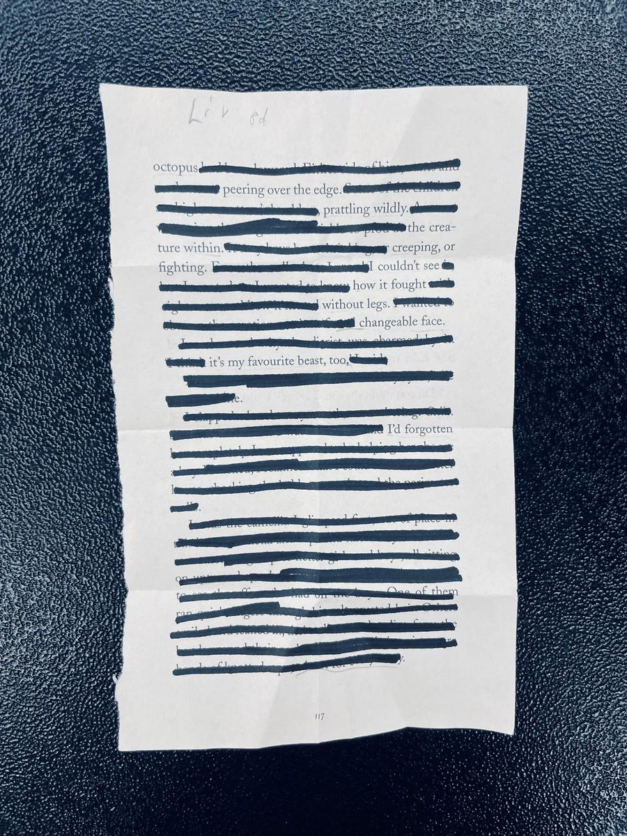 Students also got creative with a blackout poetry activity, turning pages from damaged library books into original pieces of word art. Shout-outs to Year 8 students Victoria, Lucy and Liv for their impressive poems. These three all won a library prize for their efforts.