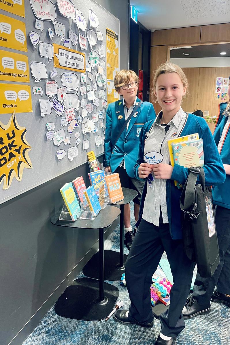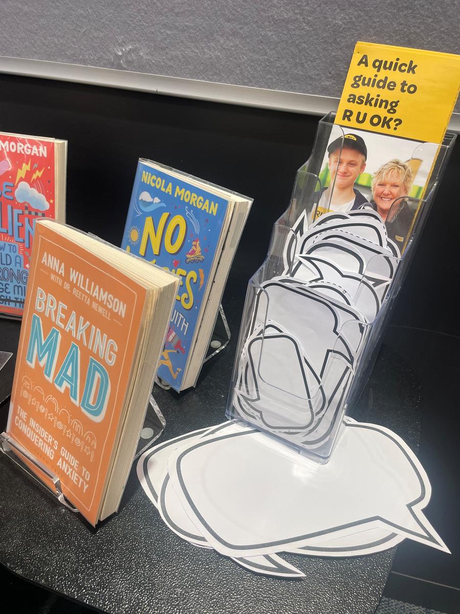 The mural invites students to post their answer to a simple question: 'what helps you feel ok on a bad day"? As a librarian, I was chuffed to see "read a book" came up again and again. Alongside the mural is a display of resources about mental health, wellbeing and kindness. Everyone is encouraged to stop by, browse, and take a moment to reflect on the importance of reaching out and being kind.