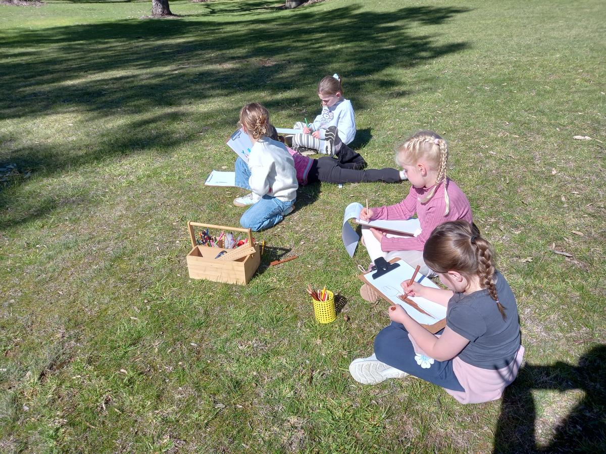 After recess we all walked down to MacKillop walk where different groups built stick forts, did still life drawings of the birds in the trees, or hunted for evidence of monsters outside the drain pipe (we are reassured that there is definitely hard evidence for this being the case, because how else would a chip packet get in the drain?)