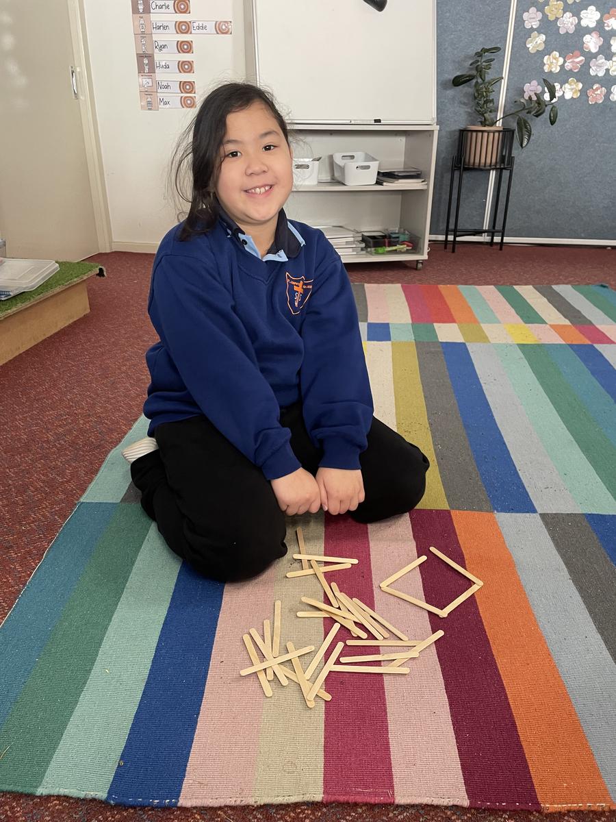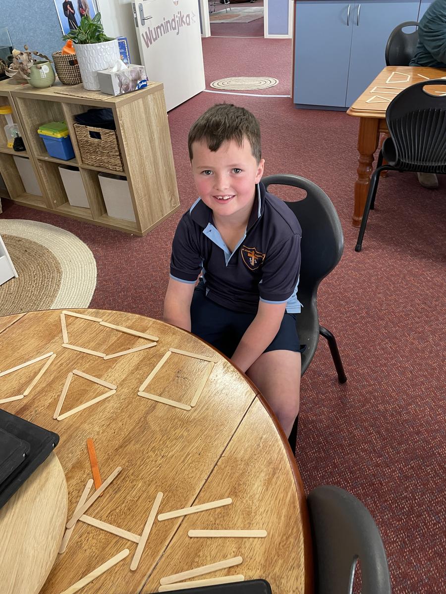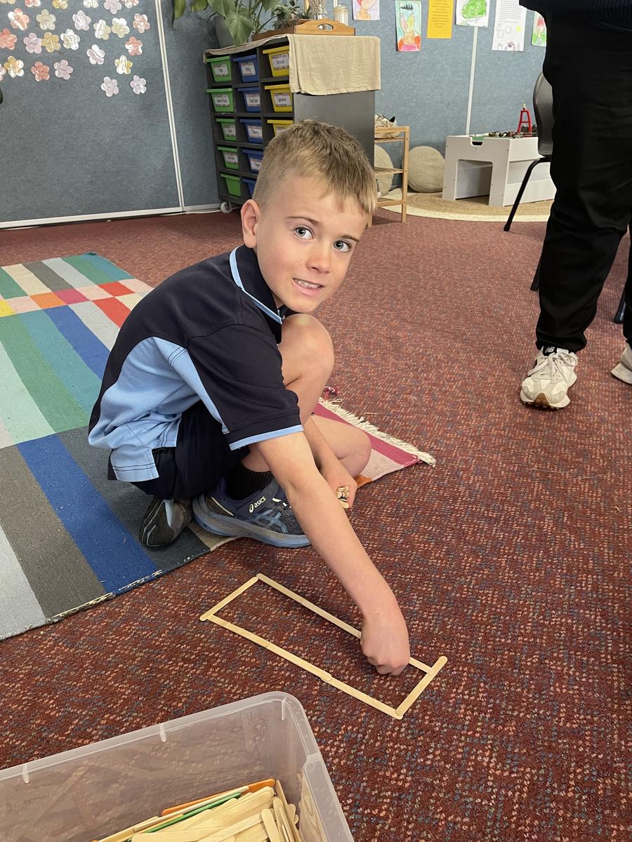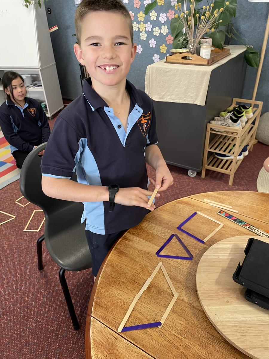 We have loved being hands on and making our own polygons with challenges such as using pop sticks to make shapes with 1, 2 or 3 pairs of parallel sides as well as creating irregular polygons with different length sides.