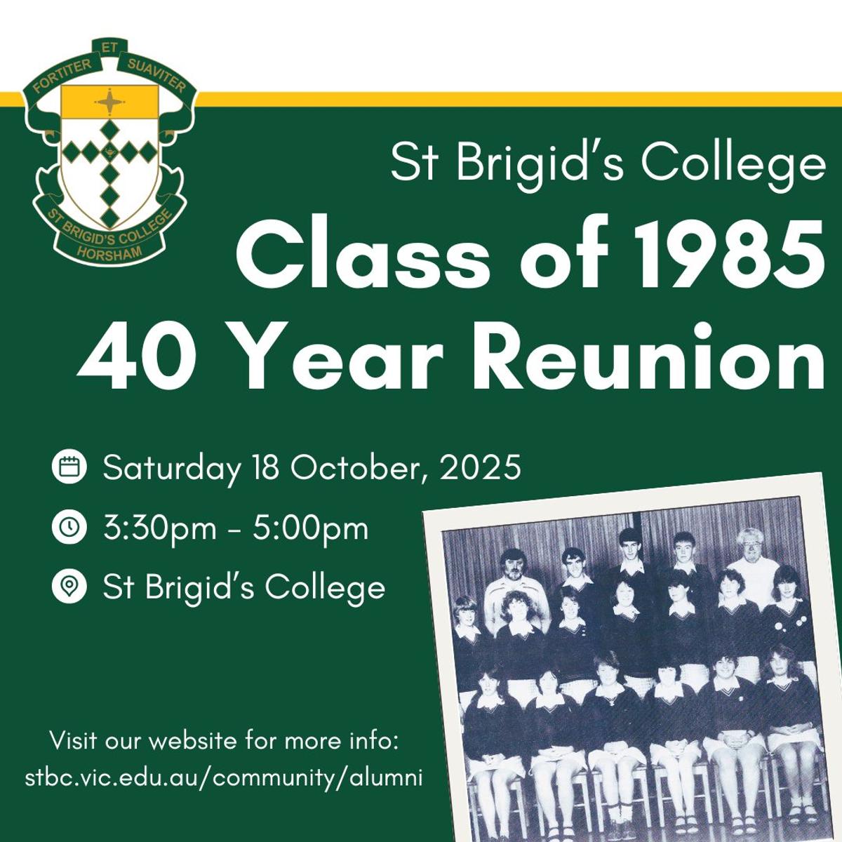 Please note, those who left before your class group graduated Year 12, are most definitely invited to come to the reunion. For example, if you left school in Year 10 in 1983, you are part of the Class of 1985.