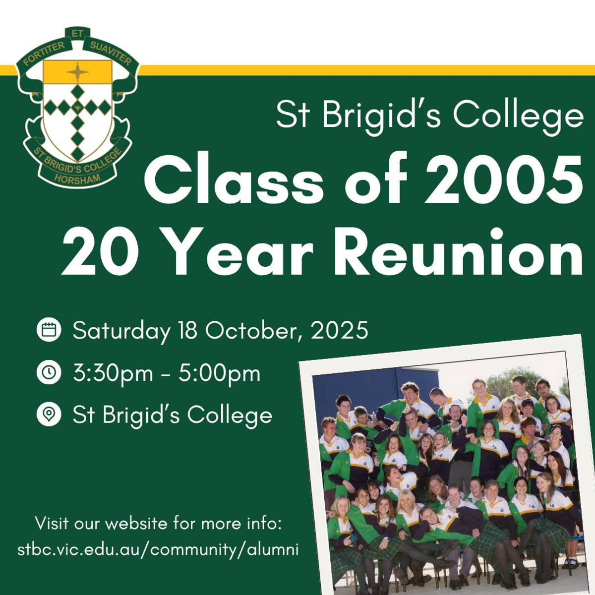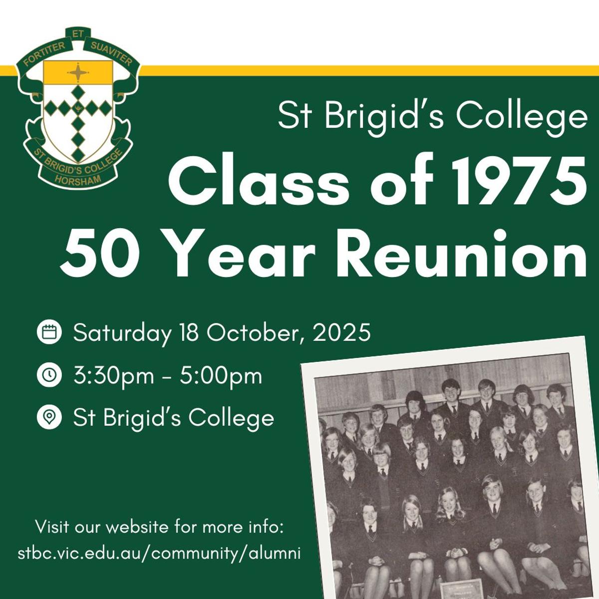 A reminder to our alumni that we are celebrating milestone reunions for the Classes of 1975, 1985, 1995, 2005 and 2015 on Saturday 18 October 2025, from 3:30-5:00pm. Join your former classmates for afternoon tea, followed by a tour of the school.
