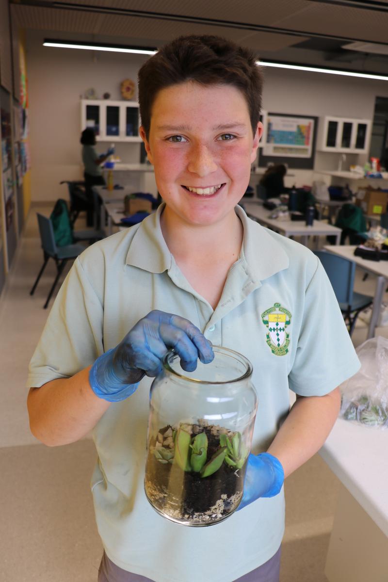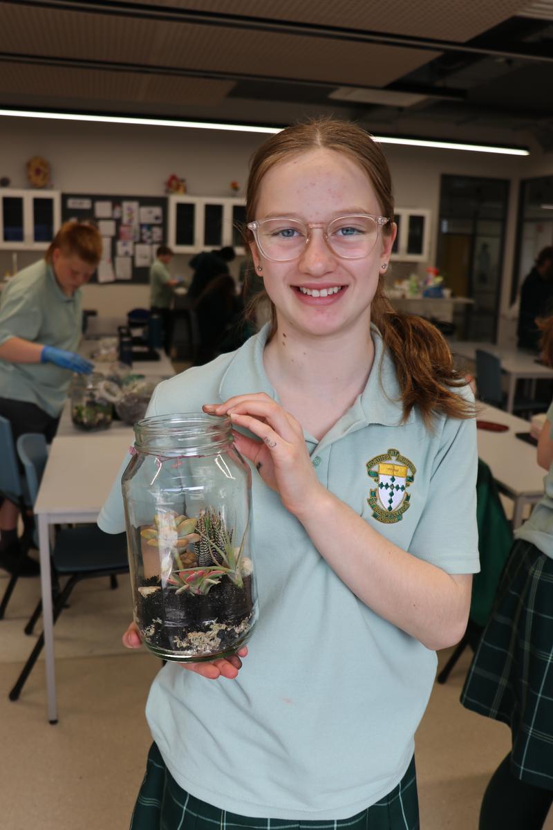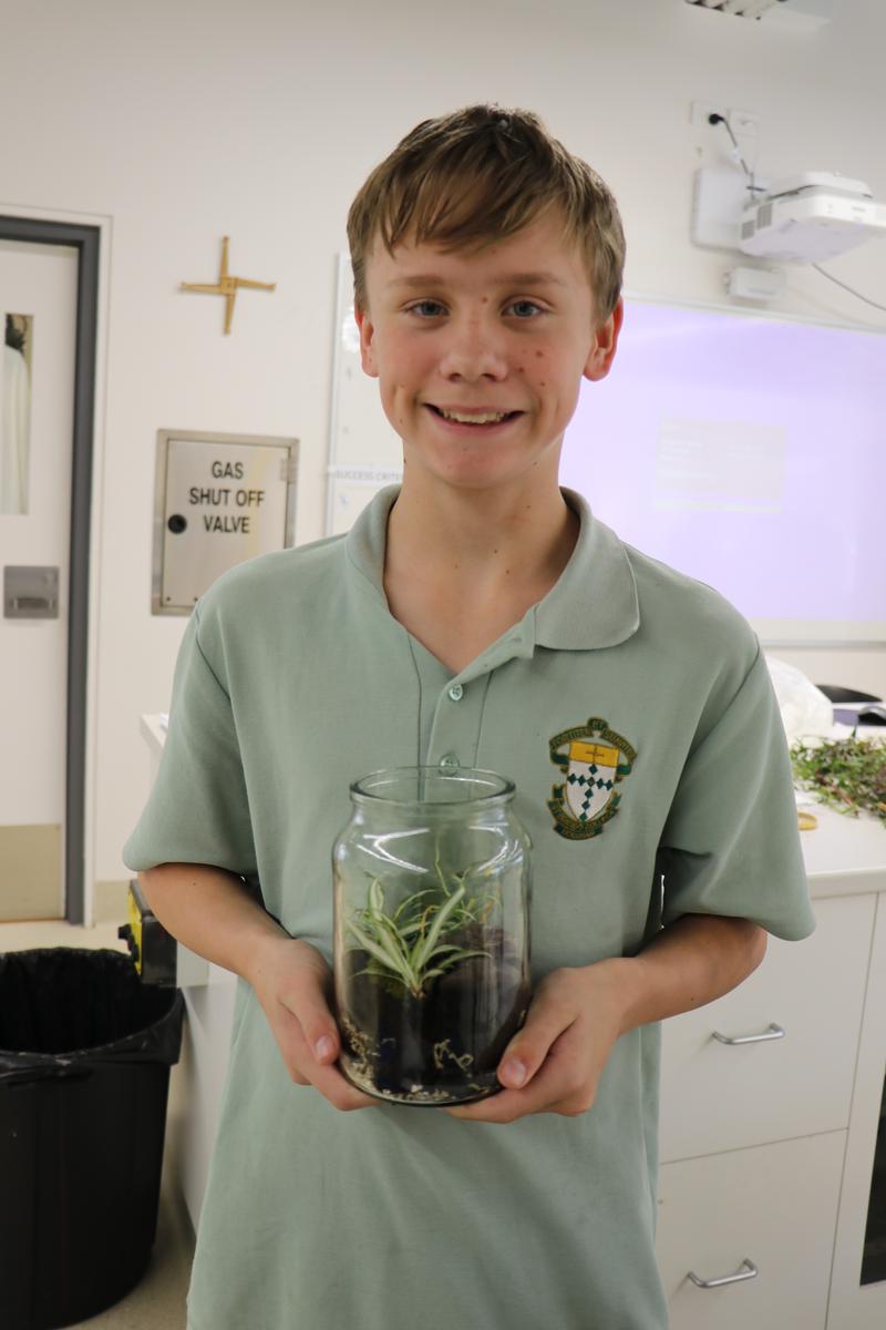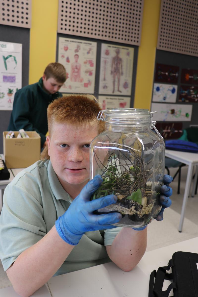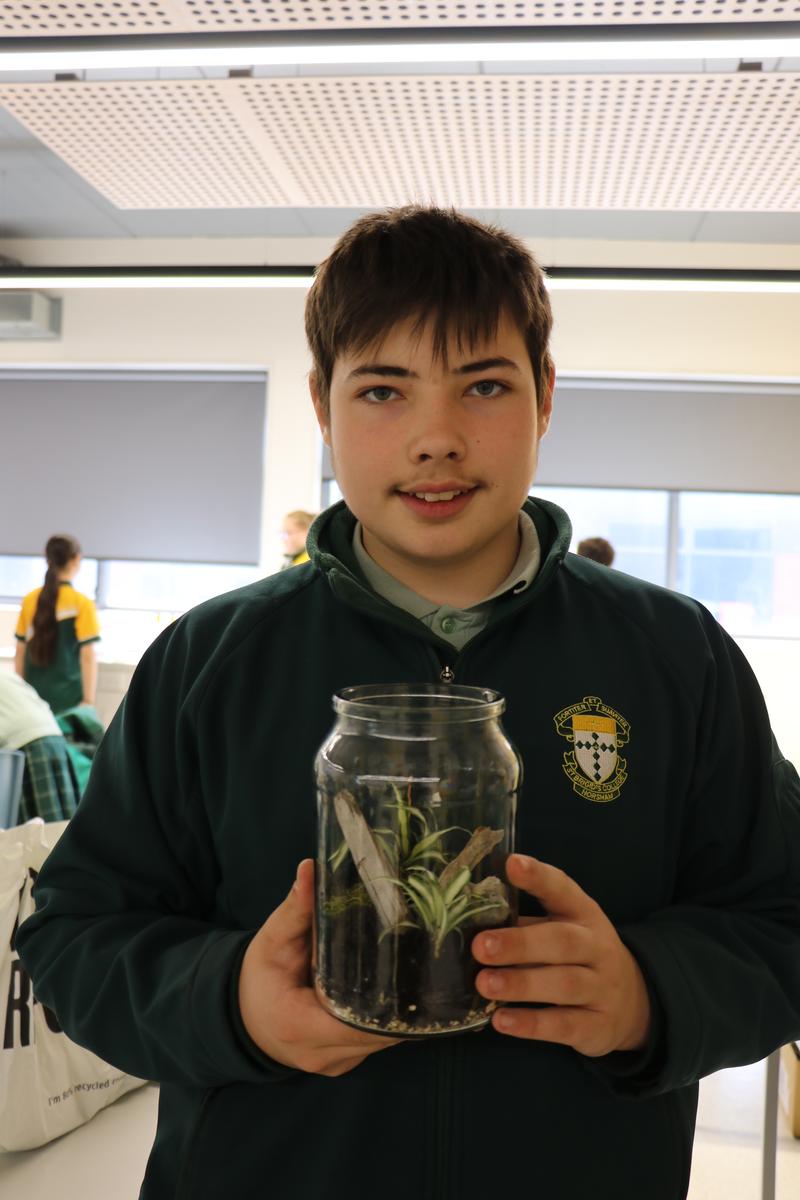 In Year 7 Science, students recently completed a unit exploring ecosystems. As a consolidation of their learning, students modelled their own ecosystem by creating these awesome terrariums! Students also created a poster displaying key concepts they learnt such as abiotic and biotic factors, impact of natural disasters habitat destruction, alongside explaining how species interact using food webs and trophic level pyramids.