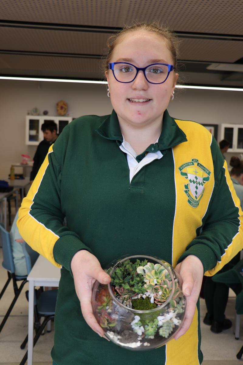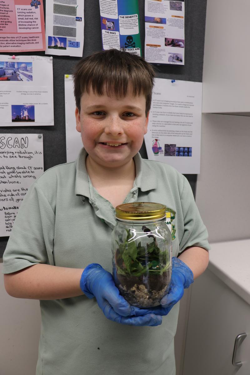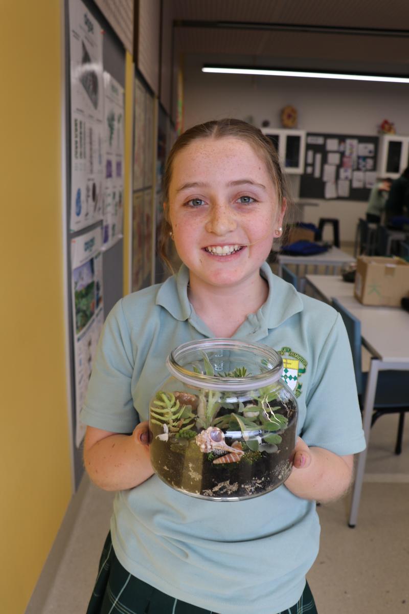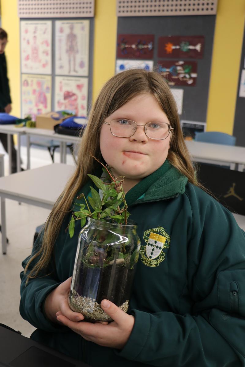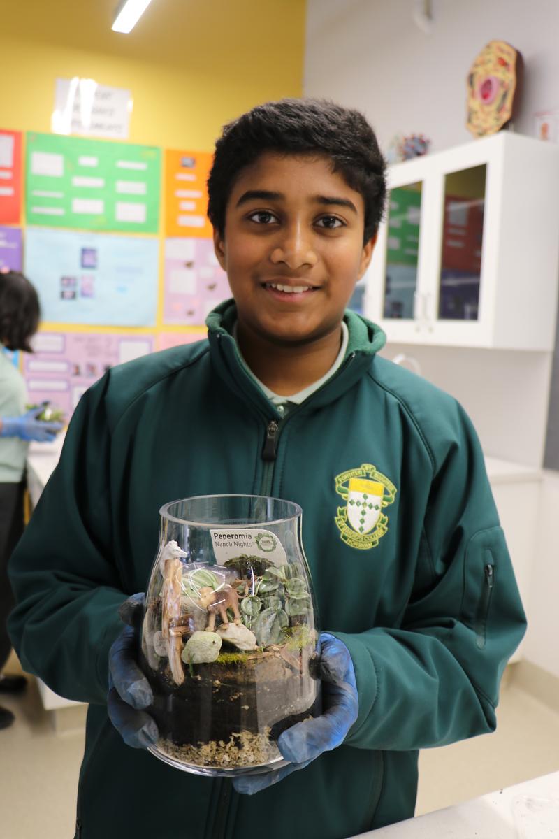 In Year 7 Science, students recently completed a unit exploring ecosystems. As a consolidation of their learning, students modelled their own ecosystem by creating these awesome terrariums! Students also created a poster displaying key concepts they learnt such as abiotic and biotic factors, impact of natural disasters habitat destruction, alongside explaining how species interact using food webs and trophic level pyramids.
