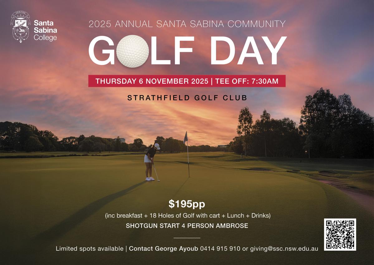 Santa Sabina College have extended an invitation to our parent community to attend their Annual Golf Day on Thursday 6 November. For any keen Mums and Dads, you are invited to sponsor or put a team of four together to join them on the day. It is a great day out starting with breakfast at 7:00 AM.