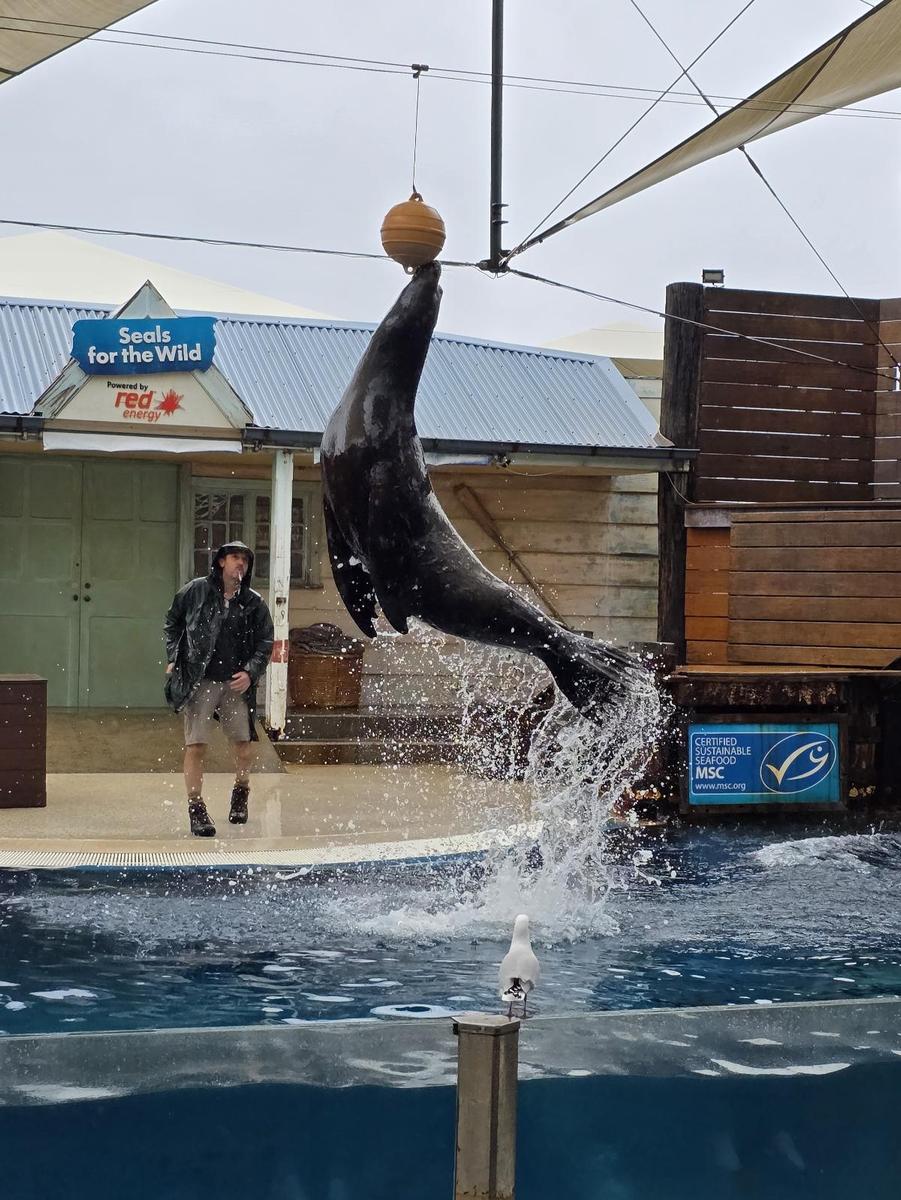 After this we went a bit further away from most groups looking at the aquarium and seals who put on a show for us, a reptile cave with massive turtles and small amphibians like frogs. After this we stopped for a break in the monkey enclosure watching them swing across various obstacles and then moved on to a stuck wallaby trying to jump on our umbrellas and kangaroos who seemed to be enjoying the rain.